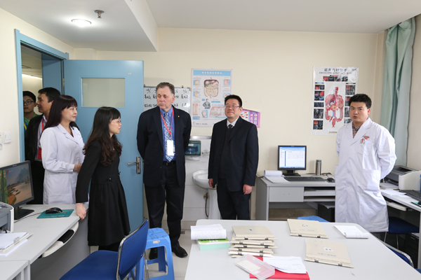 作为一名消化科医师,Marshall教授对我院消化内科的工作情况非常感兴趣,在消化科董蕾教授及王进海主任等相关人员陪同下,Marshall教授参观了我院消化内镜中心及陕西省胃肠动力疾病重点实验室。
