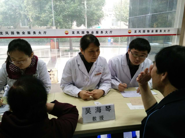 十月的西安本是个多雨的季节,但是大雨还是比较少见的。那天清晨8时,冒着滂沱大雨,在本支部书记张桂莲教授的带领下,神经内科吴海琴主任、展淑琴教授、卜宁副教授、内分泌科王俊宏副教授等14名党员及积极分子乘车前往义诊现场,车子刚停稳,义诊队伍就受到了长庆龙凤园医院白晓霞副院长及龙凤园社区服务中心化柱洲主任的热情接待,由于大雨,活动无法在室外进行,他们已经在社区服务大厅摆好了桌椅,大厅里,前来义诊的社区居民已经在翘首相望,义诊台瞬间被围得水泄不通。活动一开始,大家便投入了紧张的工作状态,以吴海琴、张桂莲、展淑琴和卜宁为主,形成了神经内科疾病义诊团队;以王俊宏为主形成了内分泌科疾病义诊团队;神经内科马晓灵护士长带领数名护士、技师负责检测血压、免费检测血脂。义诊专家们详细询问了现场居民的患病情况、用药情况,并进行体格检查、查阅各种影像片及化验单,耐心解答患者的各种疑问,对患者进行了高血压、糖尿病的饮食及运动锻炼指导,为他们宣传脑血管病一级及二级预防知识,对检查中发现的问题提出治疗建议,同时认真进行了病历记载,这为后续“慢病”患者在社区就诊提出了指导性意见。经过大家辛勤的努力,3小时共接待患者100余人,收到良好的社会效果。