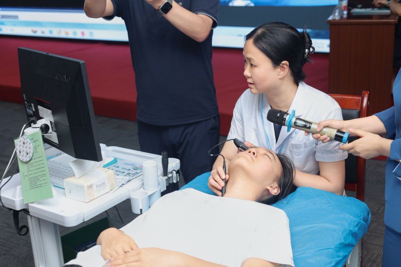 分组演练,名师手把手指导。8月9日下午,在扎实的理论铺垫后,由李江艳、翟妮娜、樊萍、郝粉娟、徐晓霞、王秀萍等经验丰富带教老师组成的技术团队,进行“手把手、面对面”实操指导。学员们反复练习TCD检测的标准流程、探头放置、参数调整、频谱识别等关键技能,及时纠正错误,巩固学习成果。