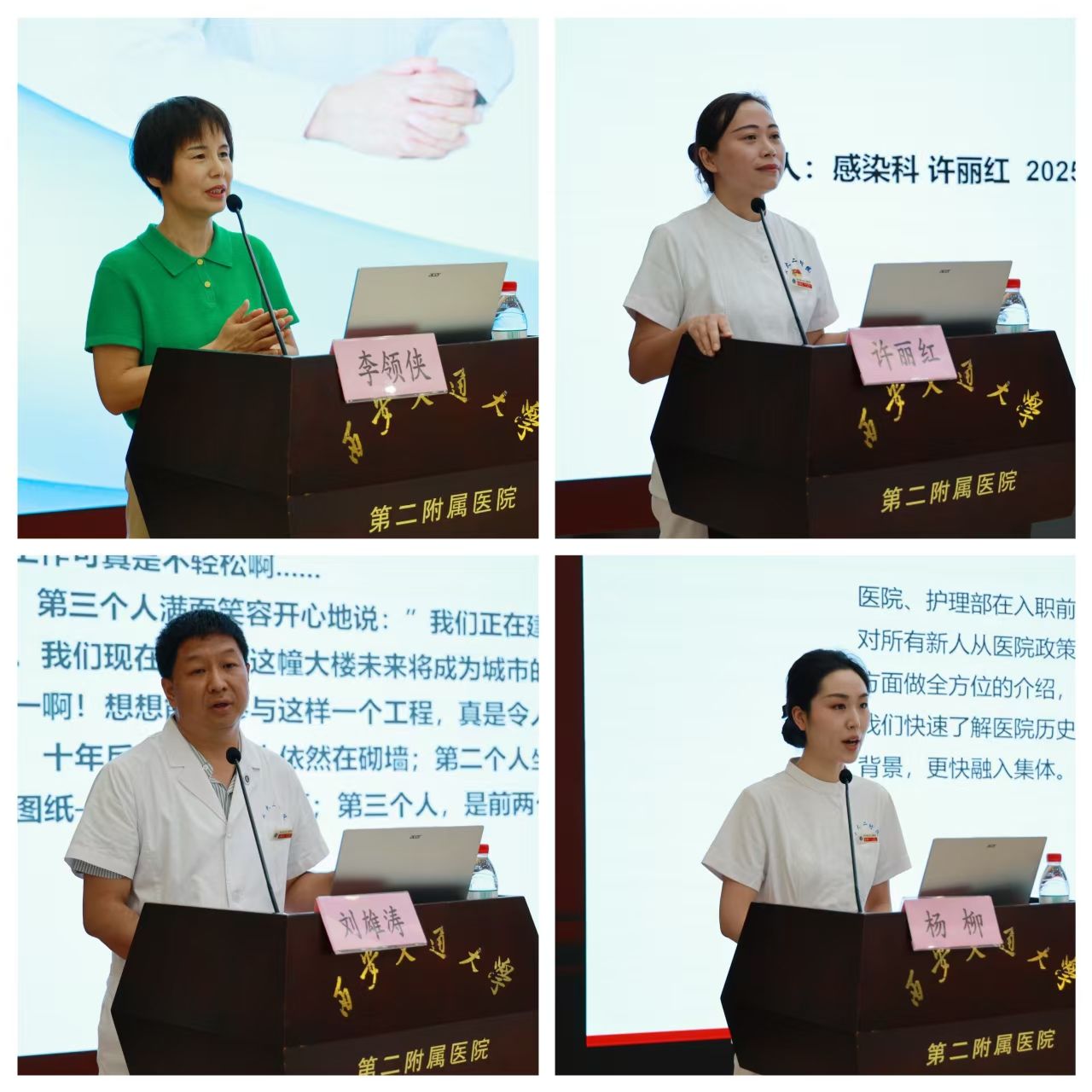 此次培训特别邀请四位优秀护理代表倾情分享。从事护理工作30余年的资深专家李领侠护士长,青年护理管理者许丽红副护士长、刘雄涛副护士长,以及优秀青年护士代表杨柳,分别结合自身岗位经历,讲述了在护理事业中的坚守与成长、挑战与突破。他们以真挚故事和深切感悟,激励新同事不忘初心、追求卓越,在平凡的岗位上实现不平凡的人生价值。