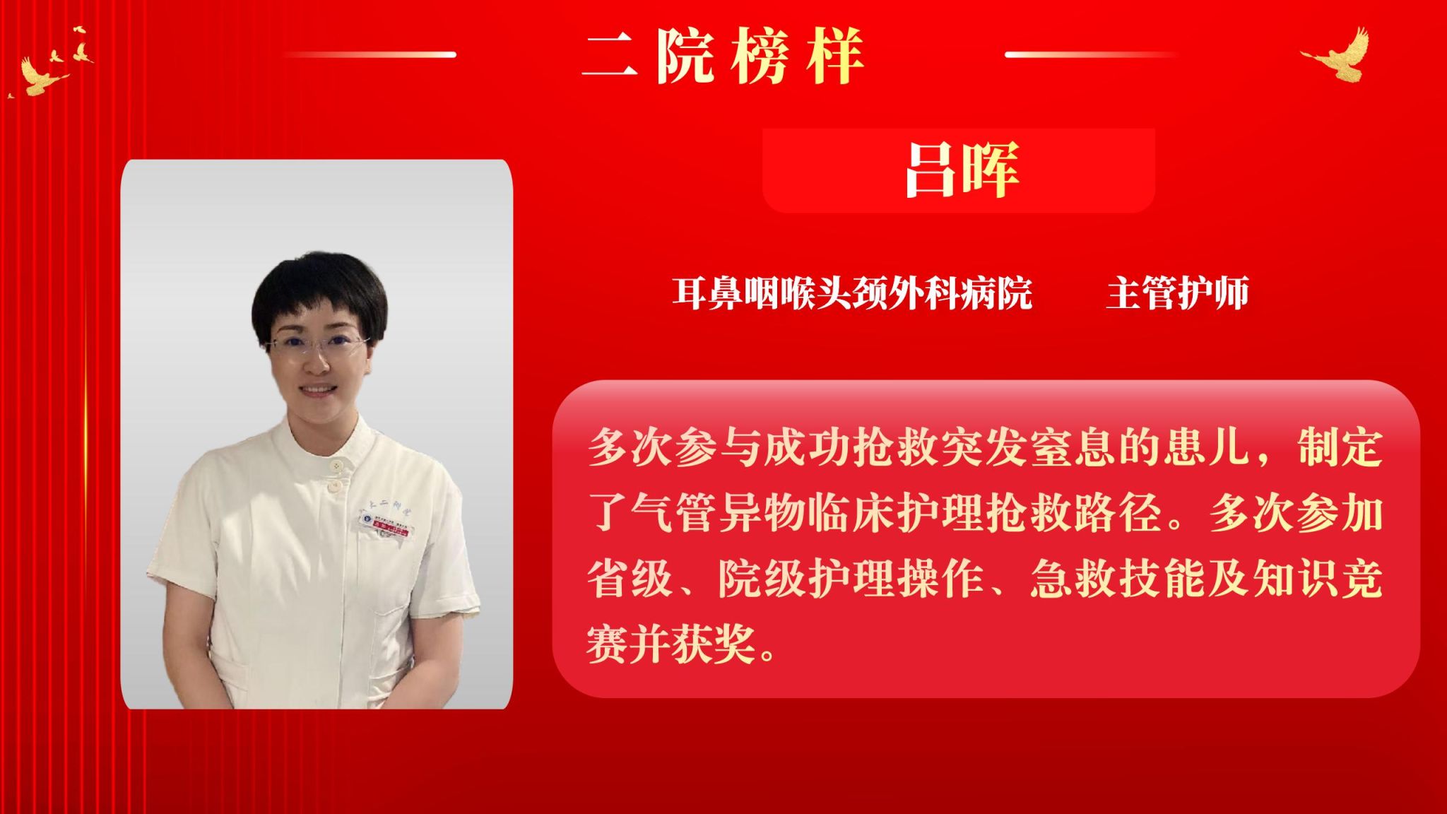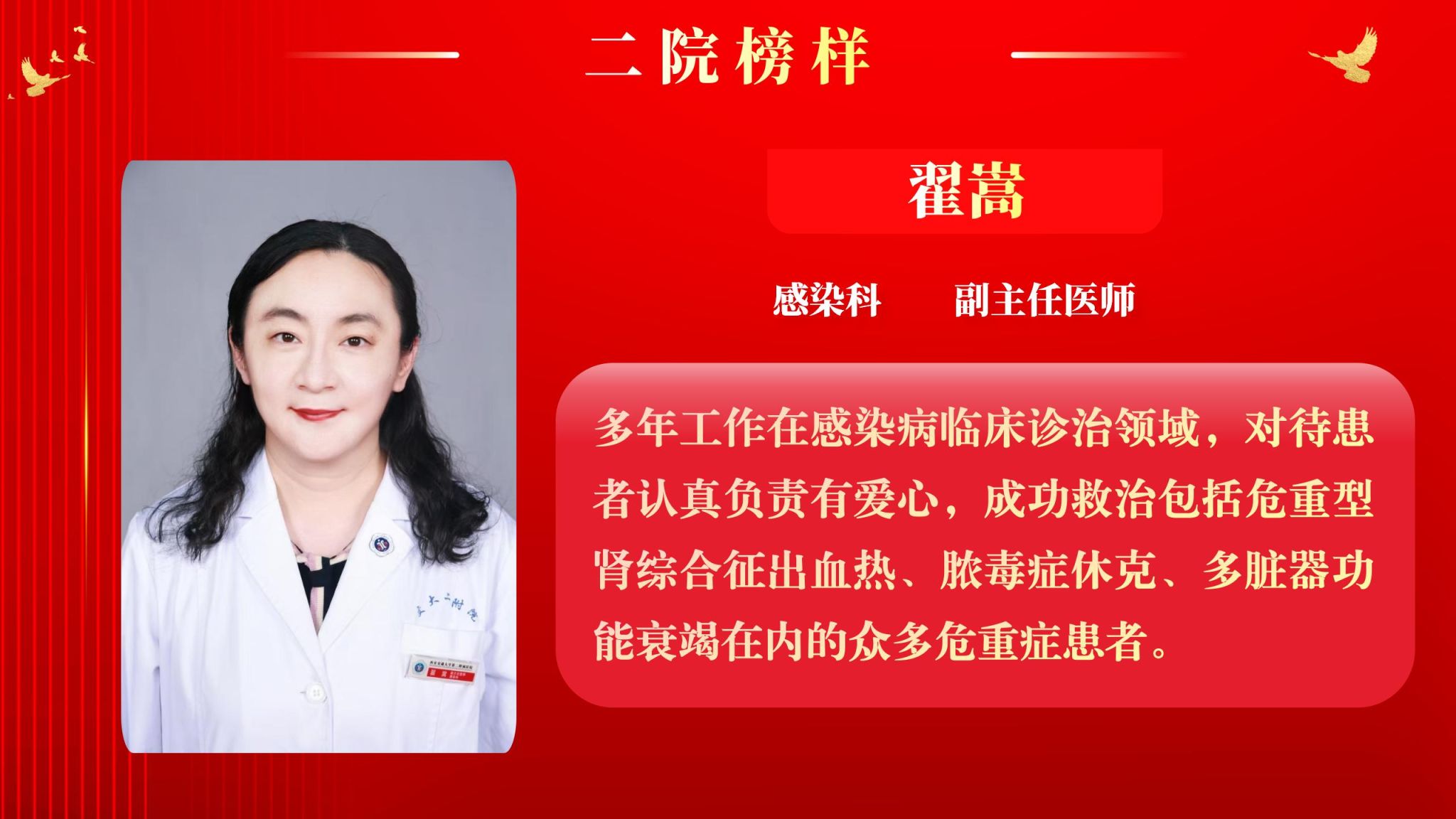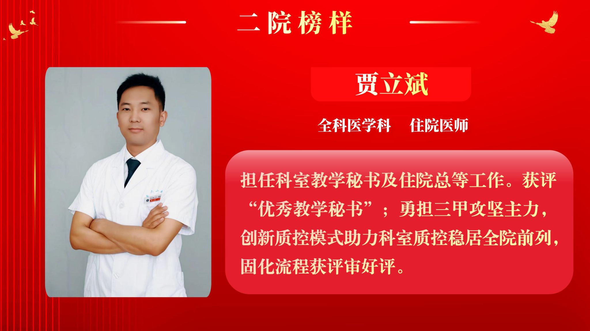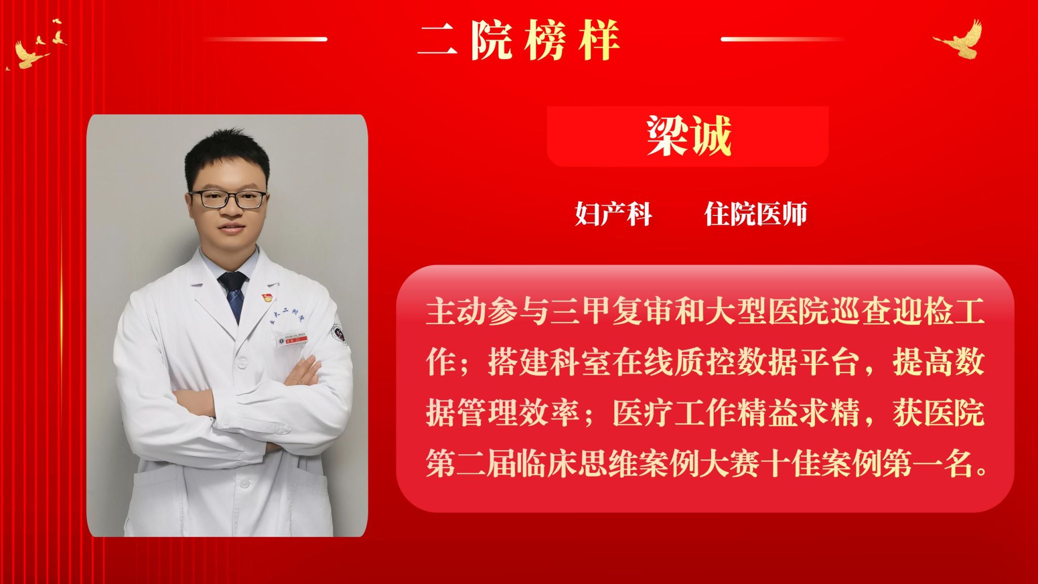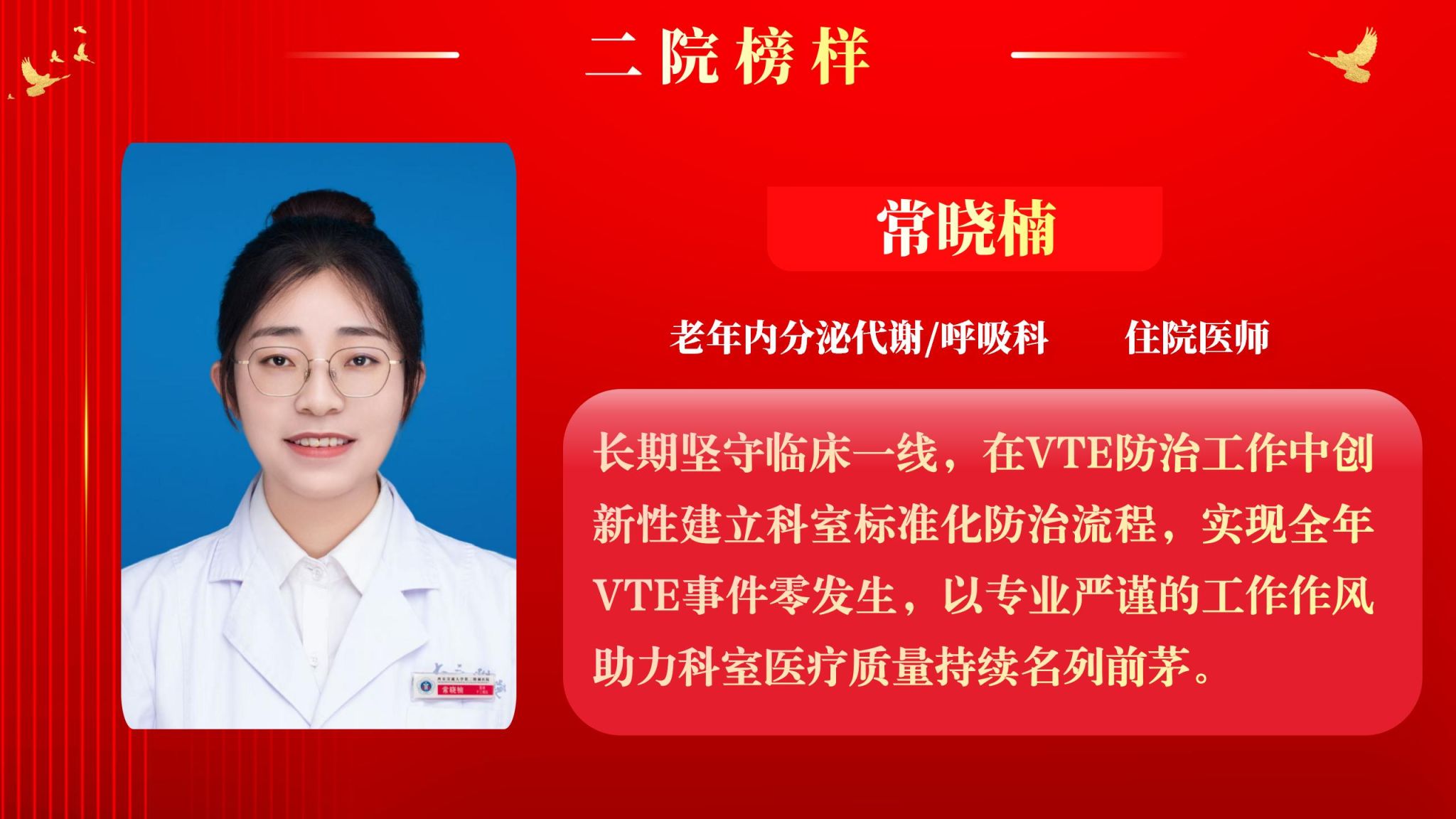 仰望星空有对标,脚踏实地有行动,平凡的是岗位,不凡的是精神。此次“二院榜样”月度人物共评选出10名,他们分别是:儿科住院医师王莉、耳鼻咽喉头颈外科病院主管护师吕晖、生物诊疗中心助理研究员朱鹏鹏、甲状腺外科住院医师乔浩、老年神经内科主管护师刘颖、感染科副主任医师李亚萍、全科医学科住院医师贾立斌、老年内分泌代谢/呼吸科住院医师常晓楠、妇产科住院医师梁诚、感染科副主任医师翟嵩。