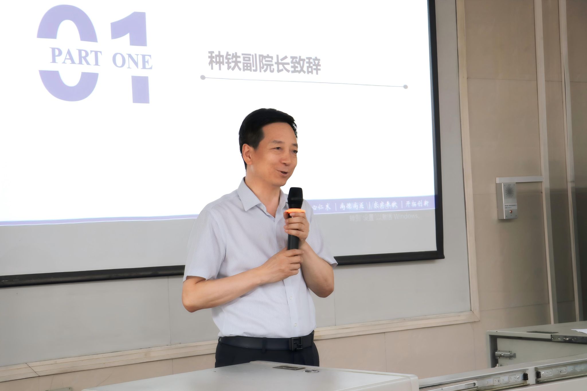 副院长种铁代表医院对2025级住院/专科医师规范化培训医师的到来表示热烈的欢迎,着重指出住院医师规范化培训作为毕业后医学教育的关键环节,对于推动医学生向合格临床医生转变有着重要意义,在助力健康中国建设进程中起到重要作用。同时强调,要严格遵循国家规定的培训标准,认真执行科室轮转计划,切实完成每个学习单元的任务。近些年,在全院高度重视下,院领导班子多次开展住专培相关议题研讨,不断加大经费投入,严控培养过程管理,2025年住培首次结业考核通过率为98.28%,近年持续提高。同时寄语新一级住/专培医师,要珍惜宝贵的培训时光,主动将理论知识与临床实践深度融合,在带教老师的指导下积极参与病例分析、技能操作和医患沟通等临床环节,培养严谨的临床思维和扎实的专业能力。以患者为中心,时刻将医疗安全放在首位,既要保持对医学事业的敬畏之心,也要勇于面对挑战,在实践中不断总结经验、弥补不足,努力成长为能够独立承担临床工作的优秀医师,为医院的发展和医疗卫生事业的进步贡献力量。