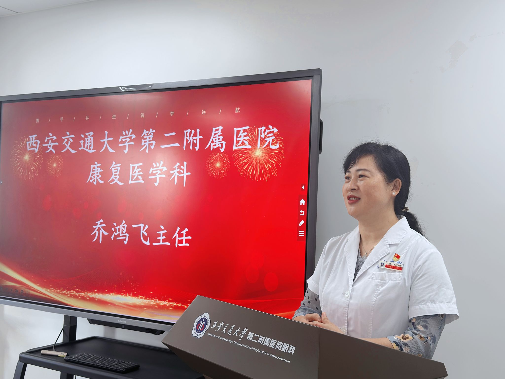 9月1日8点,在西安交通大学第二附属医院西门诊住院楼七楼会议室举行了欢迎仪式。本次会议由康复医学科杨峰护士长主持。参加本次欢迎仪式的有中国康复医学会吞咽障碍专业委员会张巧俊主任委员、西安交通大学第二附属医院护理部姚聪副主任、康复医学科乔鸿飞主任、康复医学科党支部书记袁海峰教授、康复医学科惠艳娉副主任、吞咽专科护士总带教李艳主管护师、康复医学科雷晓辉治疗师长、康复医学科马奔治疗师长、ST李艳存主管治疗师以及高鑫主管治疗师。本次仪式以 “锤炼专业精兵 守护生命滋味” 为主题,搭建起 “学会 - 医院 - 科室” 三方联动的教学桥梁,为学员实践指明方向。