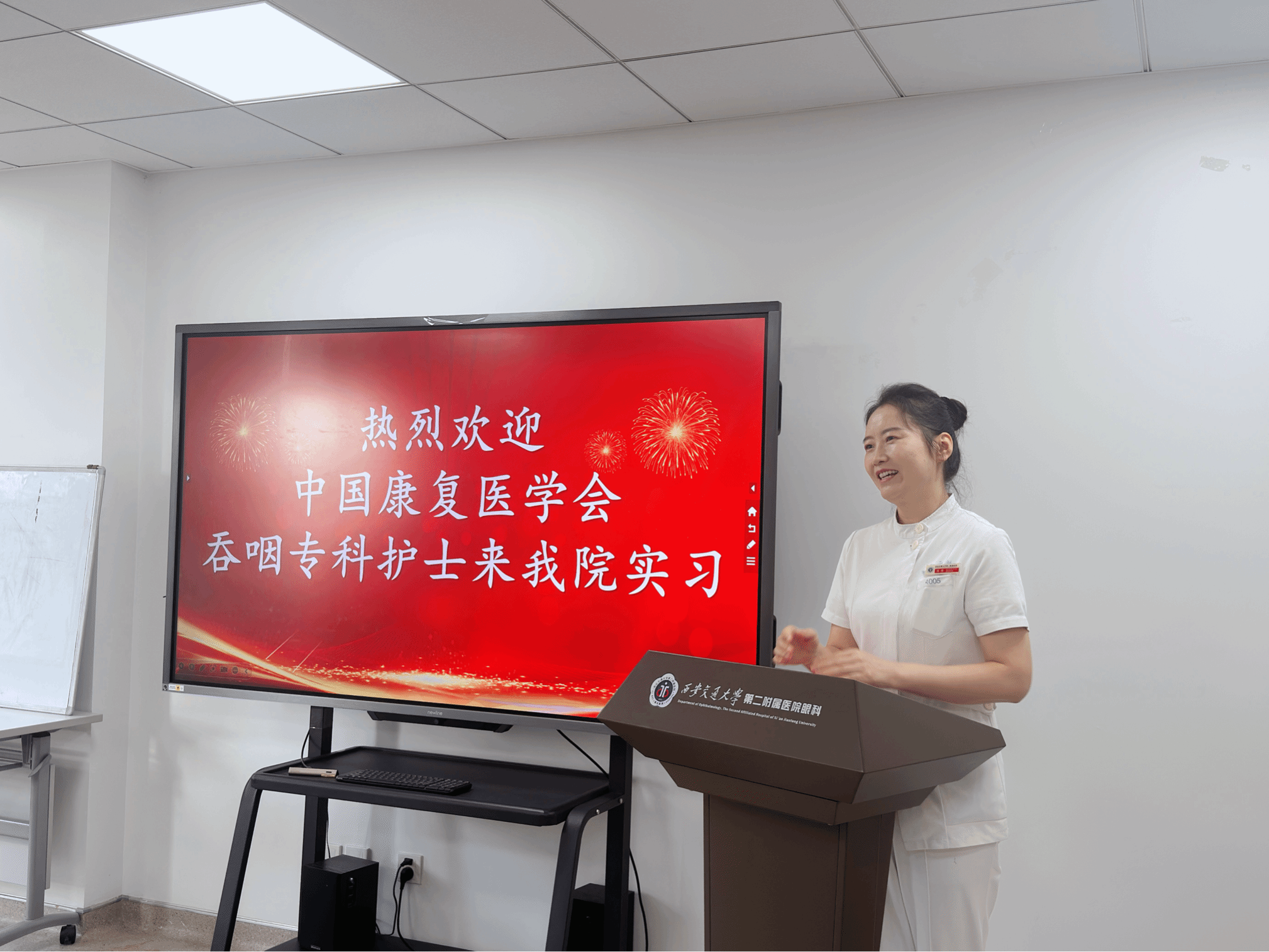 古都西安,金秋送爽。9月1日上午,来自全国8个省份、9家三甲医院的10名中国康复医学会吞咽专科护士学员,齐聚西安交通大学第二附属医院康复医学科,正式开启为期8周的临床实践深造。这场聚焦“吞咽障碍护理”的专业培训,不仅是交大二附院作为国家级临床教学基地的又一次重要教学实践,更将为全国吞咽康复护理事业注入新活力。