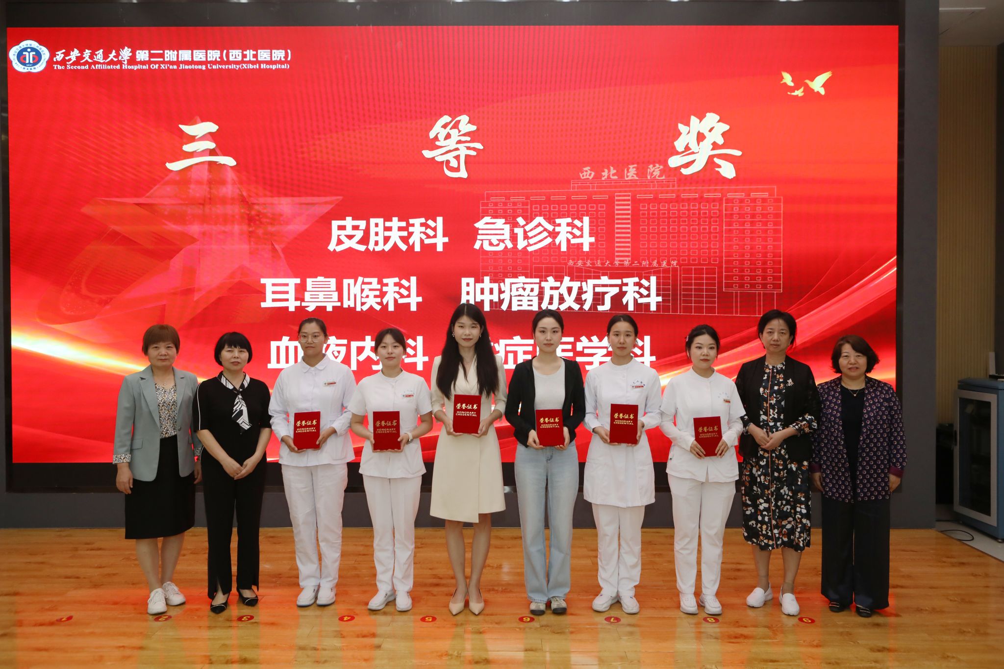 竞赛的成功举办,离不开各相关部门的大力支持、评委老师的悉心指导以及选手们的积极参与。八十八年风雨兼程,八十八年春华秋实。西安交通大学第二附属医院护理人将以本次竞赛为新的起点,持续推动护理科普创新,助力健康中国建设,以专业与温暖照亮更多民众的健康之路,以实际行动庆祝我院88华诞!