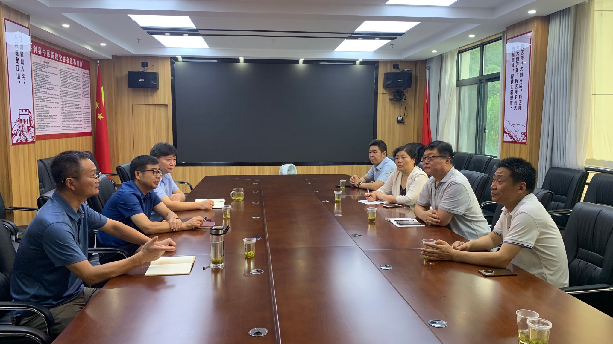 义诊期间,陈海文主席带队与平利县中医医院举行了交流座谈会。平利县中医医院党委书记汪贤君,党委副书记、院长田东,副院长陈宏出席会议。会议上,双方围绕目前两院的协作与帮扶、驻院帮扶人员工作开展、技术协作等内容展开深入探讨。民主党派工作站负责人朱建宏对下一步工作站工作设想进行了交流,拟组织平利县医疗卫健系统中小学生开展假期研学活动。