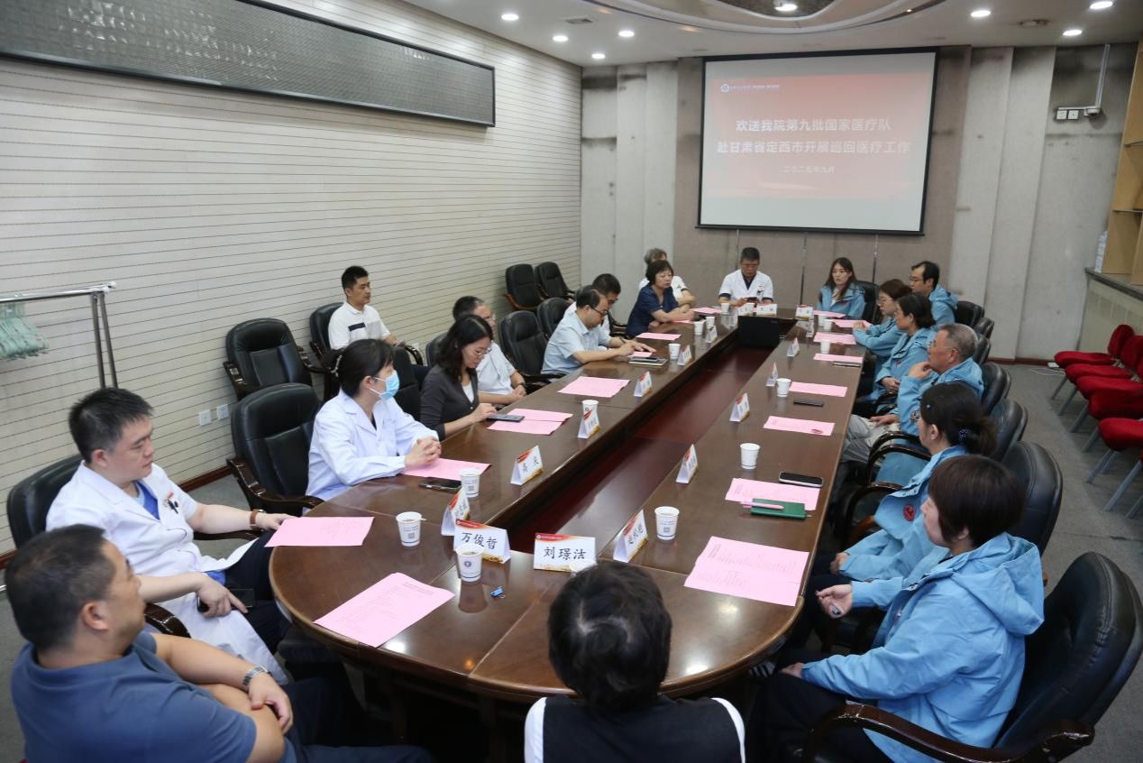 为持续推动优质医疗资源下沉,提升基层医疗服务能力与可及性,积极响应国家卫生健康委关于组织开展2025年国家医疗队巡回医疗工作的号召,在医院领导的高度重视及各职能部门、临床科室的大力协同下,根据国家卫健委统一部署,并结合甘肃省定西市当地医疗机构的实际需求,我院精心选派出一支技术过硬、责任心强、结构合理的医疗队伍,执行本次巡回医疗任务。第九批国家巡回医疗队由骨科中心李浩鹏主任医师担任队长,儿科郭亚乐副主任医师任副队长,队员包括神经外科张熙、妇产科刘韡、心血管外科王玮璠、神经内科李雯娴、运动医学与小儿骨科赵秋艳及中医科刘静等主治医师以上骨干。