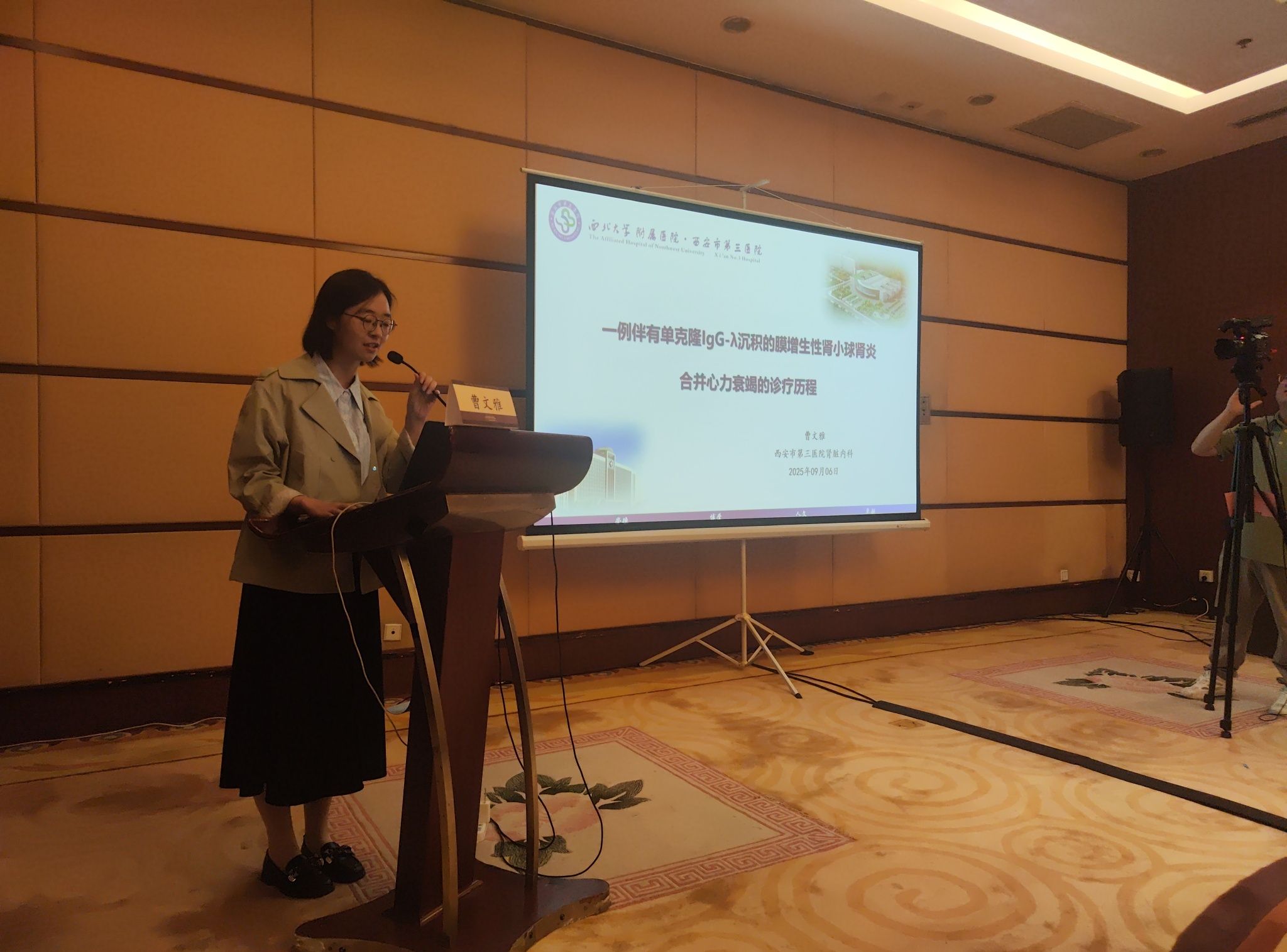 曹文雅医生报告了一例伴有单克隆IgG-λ沉积的膜增生性肾小球肾炎合并心力衰竭的复杂病例,由西安交通大学第二附属医院王莉教授主持。西安交通大学第二附属医院付荣国教授、陕西省中医医院毛加荣教授、西安高新医院曹绥琳教授和西安交通大学第二附属医院卢家美教授参与了该病例的深入探讨。