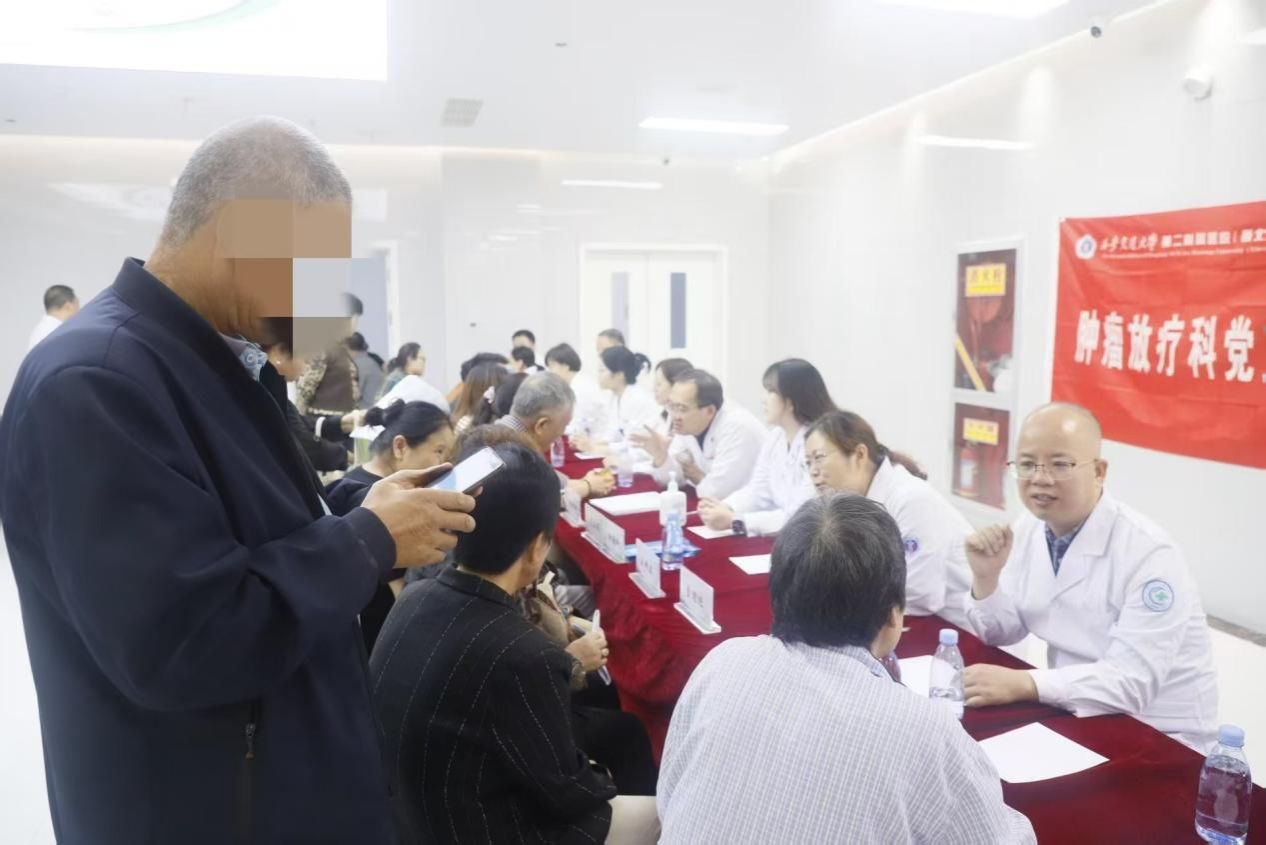 义诊专家团队由我院肿瘤放疗科党支部书记/科室主任马红兵教授带队,成员包括组织委员王亚利教授、宣传委员许雅琼护士长、科室副主任郭亚教授、赵茜茜教授、头颈组组长王中卫教授、腹组组长王宝峰教授、物理师苏王辉等多位党员业务骨干。义诊现场,前来咨询和问诊的群众络绎不绝。专家们耐心细致地为每一位患者查看病历、分析影像资料、解答疑问,并就肿瘤疾病的预防、诊断、规范化治疗、康复护理以及放疗注意事项等提供了专业的诊疗建议和健康指导。专家团队还深入病房,与铜川市人民医院的同行开展教学查房和疑难病例讨论,针对部分复杂病例的治疗方案提出了建设性意见,同时分享了前沿的诊疗技术和临床经验,进一步促进了双方在学术与临床实践方面的交流与共同进步。