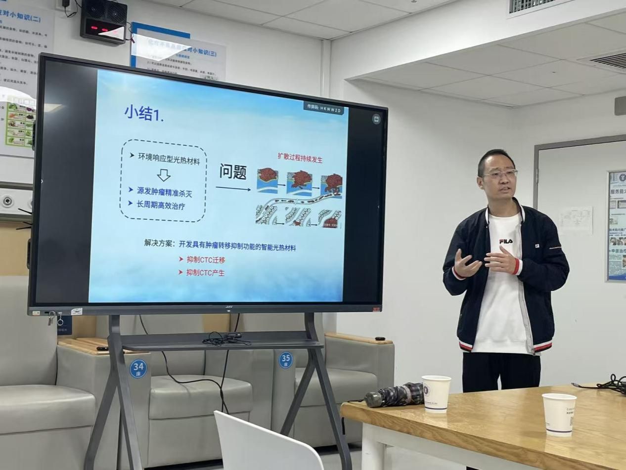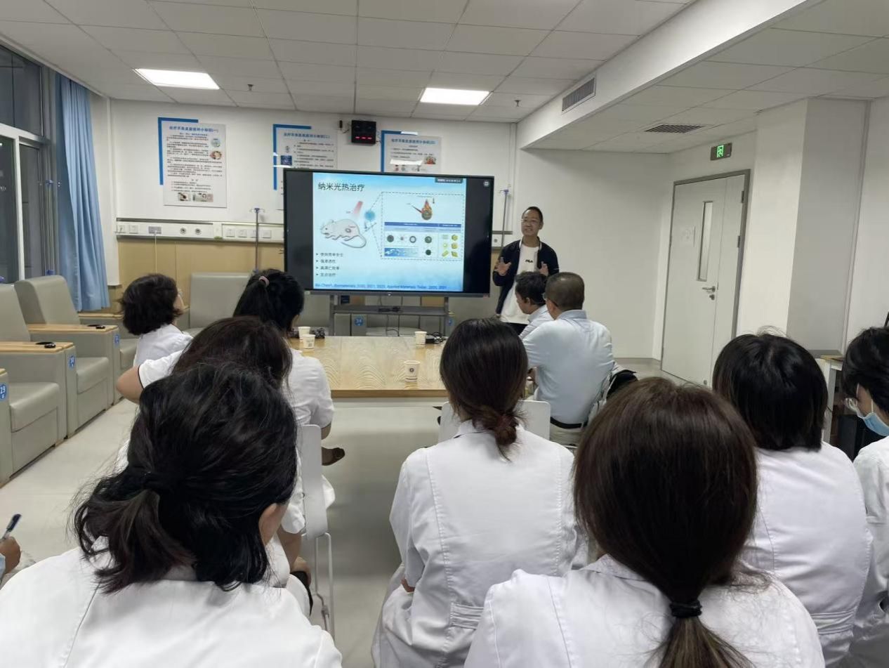 陈鑫教授以“智能纳米光热材料”为切入点,深入浅出地解析了纳米技术在肿瘤精准治疗中的应用前景。他结合自身团队的科研成果,从材料设计、机制研究到临床转化,系统阐述了智能纳米材料如何实现肿瘤的“靶向杀伤、可控释放、实时监测”,为在场医护人员打开了“交叉学科赋能肿瘤治疗”的新视野。