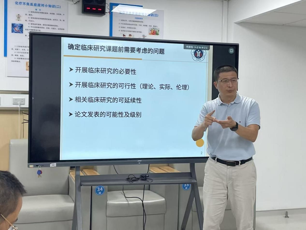 我院纪泛扑教授聚焦“临床科研选题”这一核心痛点,从“临床需求挖掘、创新点提炼、可行性评估”三个维度,结合自身肝病/新冠领域科研经历分享实战经验。他强调,临床科研要“源于临床、高于临床、回归临床”。他鼓励青年医护人员从日常诊疗中发现科学问题,通过严谨设计和持续探索,产出有价值的科研成果,助力肿瘤诊疗水平提升。