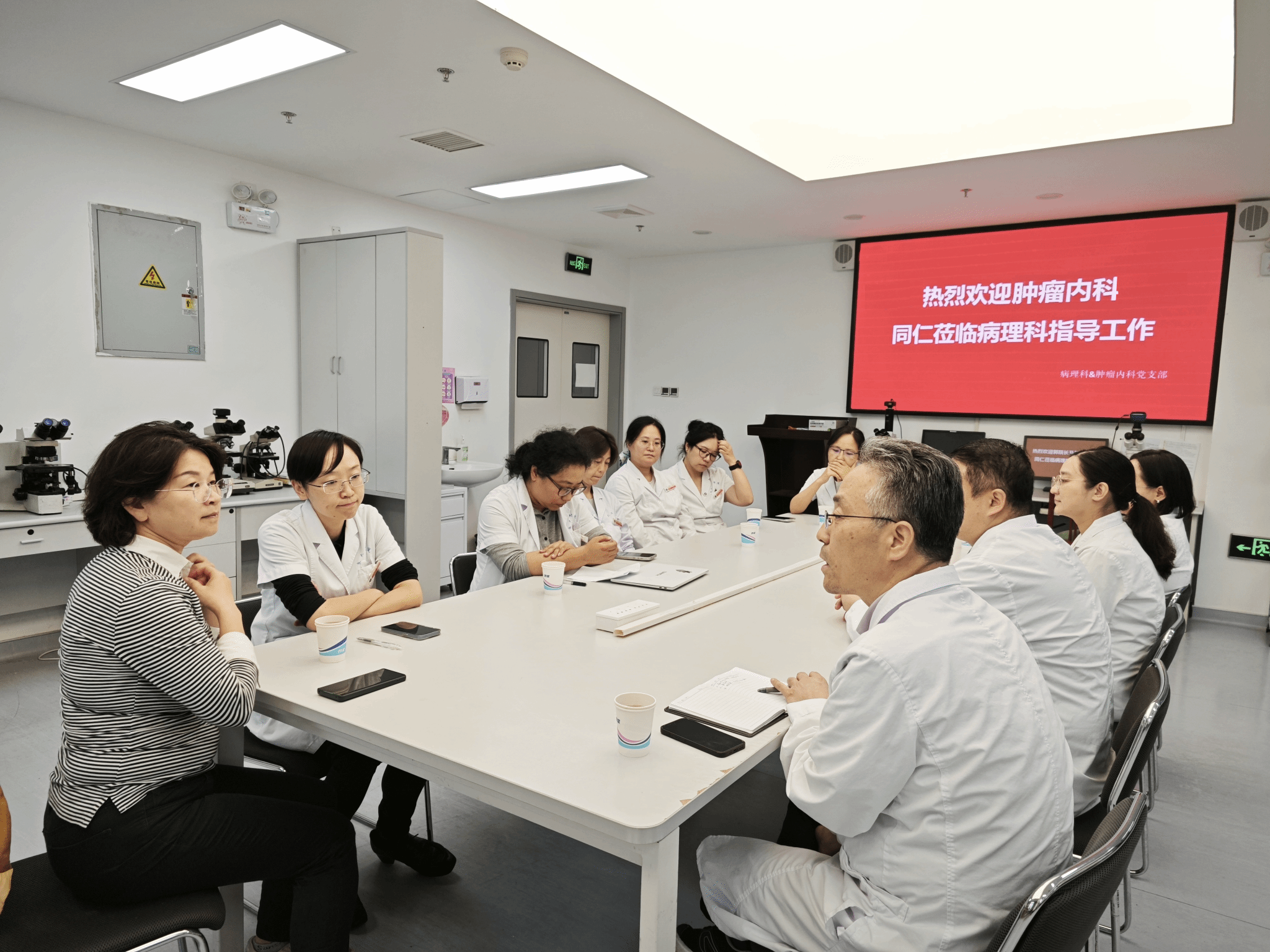 病理科杨军主任、郭睿支部书记兼副主任、马莉副主任及病理技术组靳耀锋组长及病理科骨干医生全程参会,同时,孟夏副主任代表医务部参加会议。