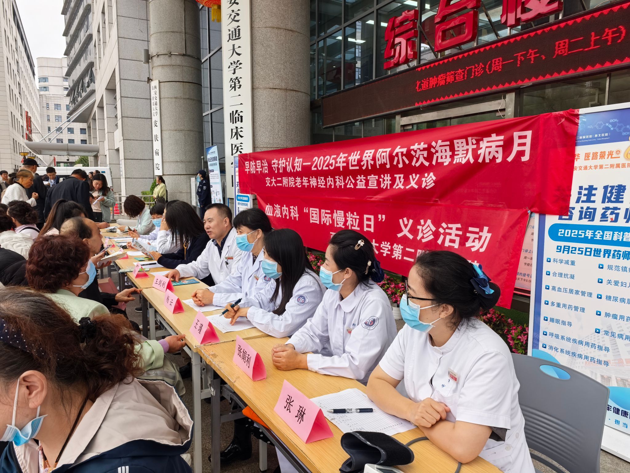 9月22日上午,西安交大二附院血液内科党支部积极响应院党委“党建与业务深度融合,献礼院庆八十八周年”的号召,践行“以人民健康为中心”的服务宗旨,在门诊楼前举办主题为“重回自我,无需等待”的2025“国际慢粒日”义诊活动。
