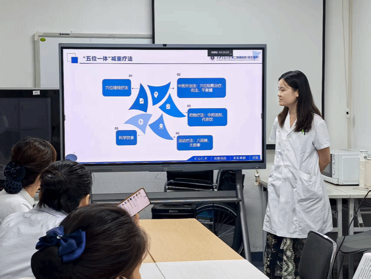 中医科郭昶医师以《中西医结合“五位一体”综合疗法在体重管理中的构建与应用》为题分享。郭昶医生指出,肥胖作为多种慢性病的共同土壤,其管理需要打破单一减重的传统模式。她详细阐释了其所倡导的“五位一体”综合疗法体系。这一模式不仅关注体重数字的下降,更注重代谢指标的全面改善、生活质量的提升以及健康行为的持久养成,体现了中西医结合的独特优势和深度内涵。