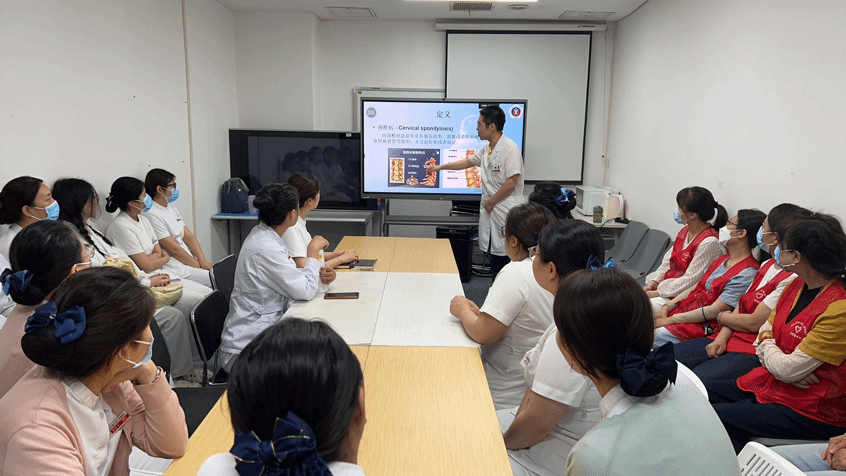 脊柱与骨肿瘤病区的王放副主任医师对《颈椎病的分型与诊治》进行了分享。王放医生系统介绍了颈椎病的临床表现、典型症状、体征及鉴别诊断要点。在治疗方面,王放医生强调了“阶梯化”和“个体化”原则,从保守治疗、微创介入到手术治疗,详细分析了各种方案的适应症、技术优势及预后。