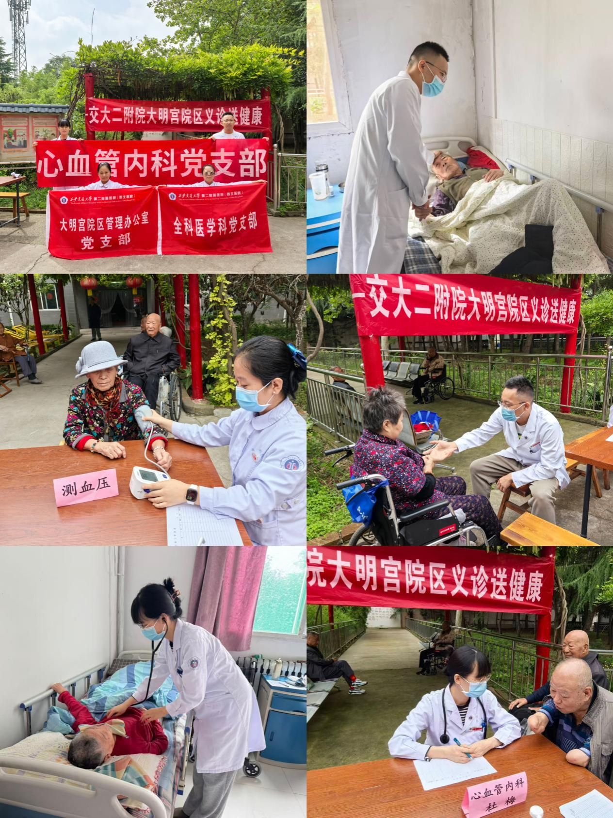 活动现场,来自心内科、全科医学科的医生们迅速投入工作,耐心细致地为每位老人提供诊疗服务。医生们仔细询问老人们的身体状况、既往病史及用药情况,针对高血压、冠心病等老年常见疾病,逐一给出专业的健康指导与用药建议。同时,大明宫院区管理办公室党支部的医护人员还为老人们免费测量血压,详细记录检测数据,对血压异常的老人及时提醒注意事项,并叮嘱护理人员加强日常健康监测。