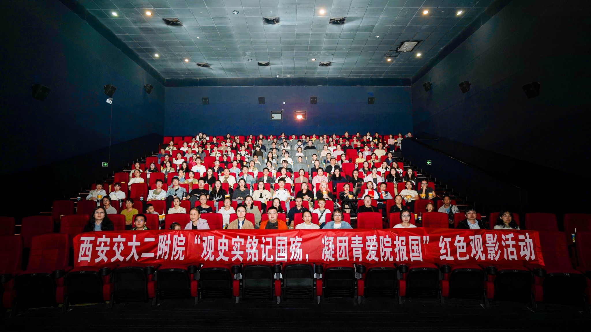 9月26日晚,院团委在民乐园万达影城组织全院近200名青年教职工和学生代表开展“观史实铭记国殇•凝团青爱院报国”红色观影活动。观看电影《731》,在回望民族伤痛中筑牢爱国信念,以深刻的精神洗礼庆祝医院抗战迁陕88周年。
