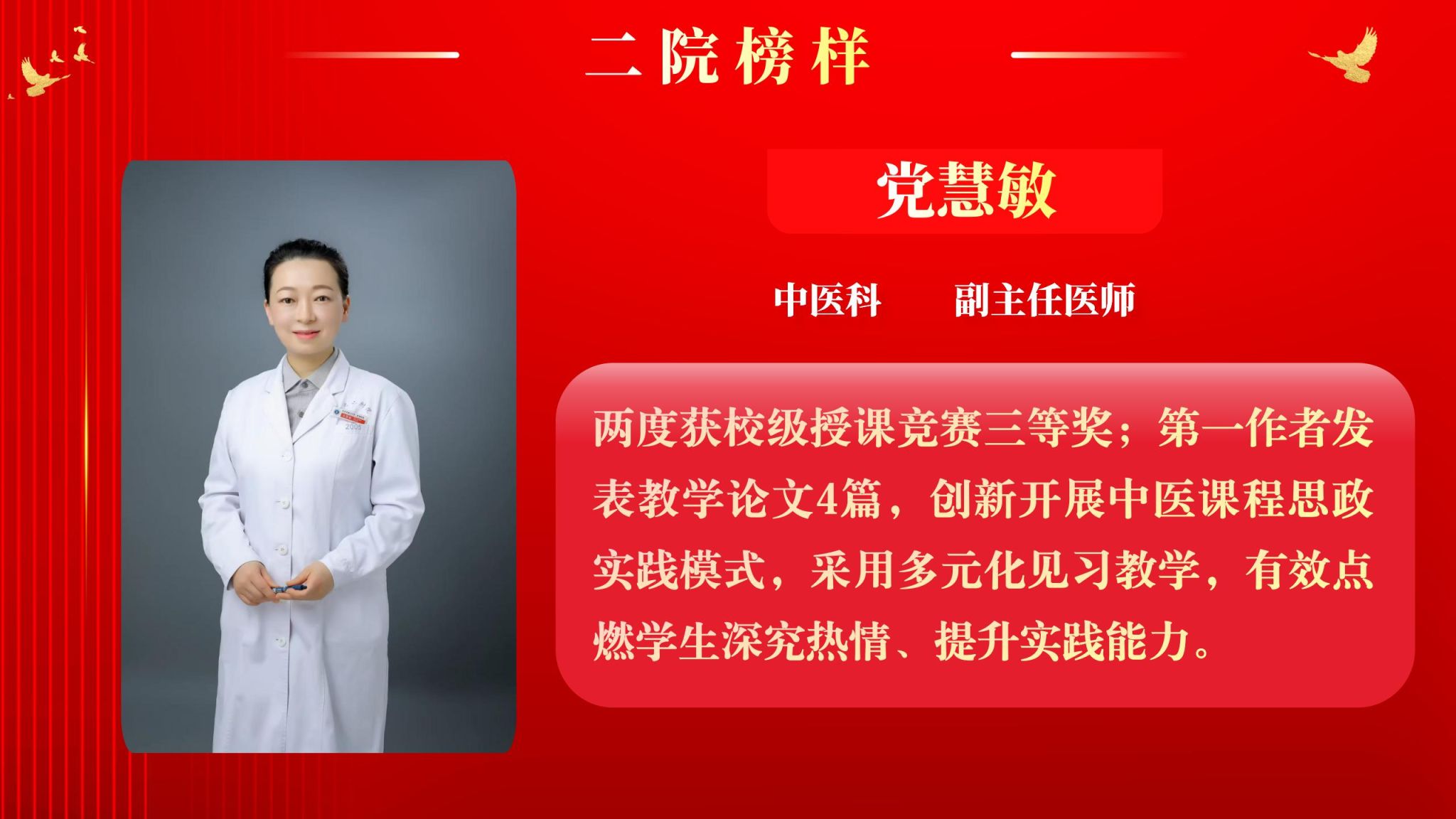 为营造全院将比学赶超融入实际工作,以奋发有为、积极进取的精神面貌迈向新征程,以“二院榜样”评选为契机,以榜样引领促进全面进步。9月28日下午,院工会在南院多功能厅举行了2025年“二院榜样”8月月度人物表彰大会,大会由党委副书记党变玲主持。