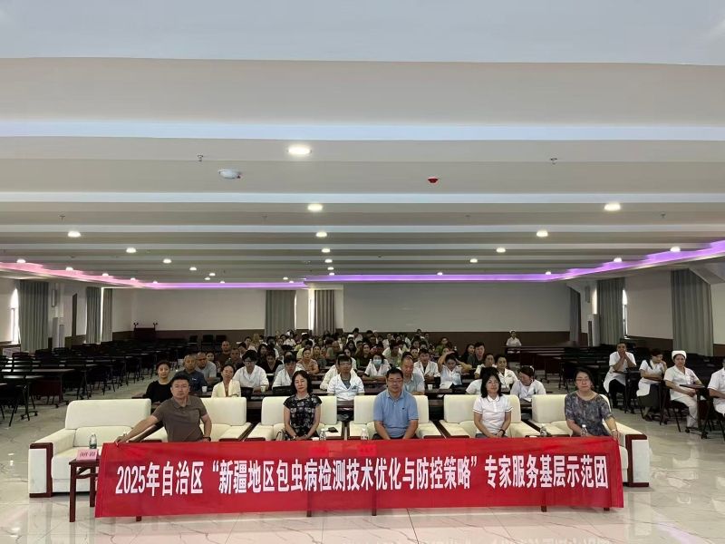 为推动新疆地区包虫病检测技术优化与防控策略升级,在自治区人力资源和社会保障厅的大力支持下,由新疆医院检验科副主任黄睿带队并组建“新疆地区包虫病检测技术优化与防控策略专家服务示范团”,深入喀什、阿勒泰、和田等地基层医院,通过专题讲座、互动答疑、实验室指导及宣传科普,为基层医疗注入强劲技术动力,全力守护新疆各族群众生命健康。