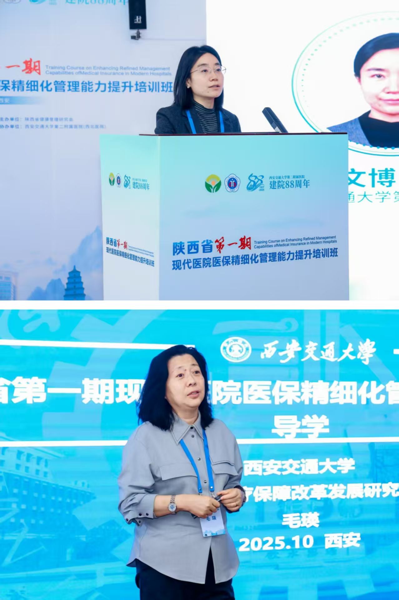 在我院88周年院庆之际,依托我院医保精细化管理“省级示范中心”,10月31日全天,我院承办的“陕西省第一期现代医院医保精细化管理能力提升培训班”在大明宫院区顺利举办。特邀西安交通大学公共政策与管理学院毛瑛教授、西安交通大学第二附属医院李文博总会计师出席,同时邀请空军军医大学第一附属医院医保办主任刘晓雷、空军军医大学第二附属医院医保办主任薛峰、西安交通大学第一附属医院医保办主任王小莉、西安交通大学第二附属医院医务部常务副主任王虎清、陕西省人民医院医保管理处处长李作彬作嘉宾主持。本次培训通过线下授课、现场演示与互动交流相结合的形式,吸引了全省各级医疗机构医保、运营、药学等近150名相关专业人员参加培训。