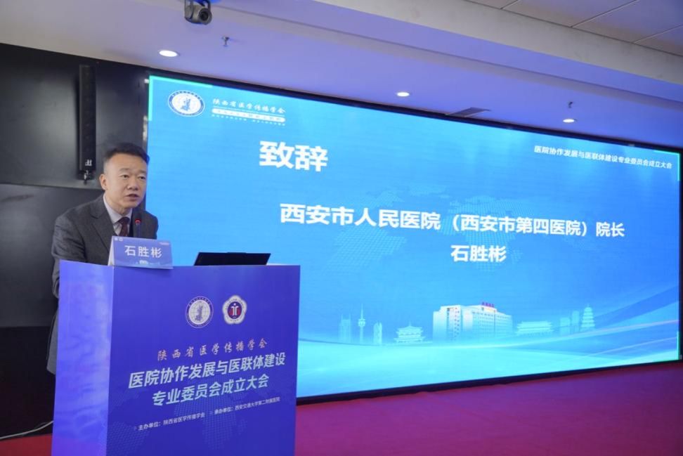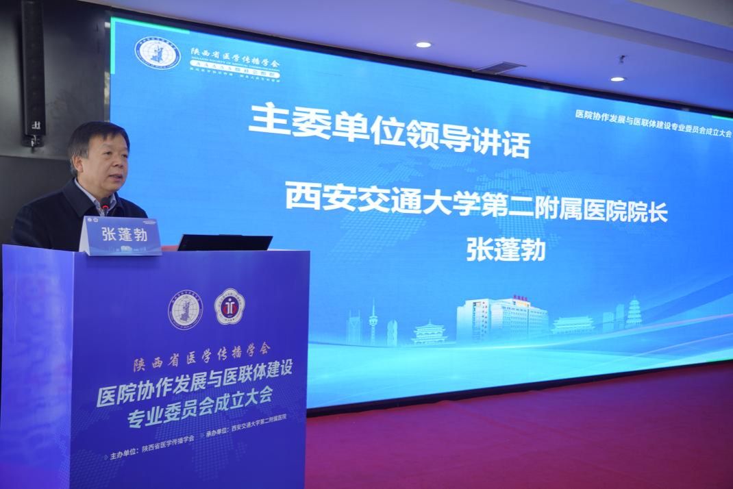 为深入贯彻落实国家关于深化医药卫生体制改革的决策部署,搭建省域各级医疗机构管理经验交流与成果推广平台,培育“懂医疗又懂管理”的复合型人才,开展“医学”与“管理学”融合探索,11月2日,由陕西省医学传播学会主办、西安交大二附院承办的陕西省医学传播学会医院协作发展与医联体建设专业委员会(以下简称“医院协作专委会”)成立大会在西安召开。西安交通大学党委常委、宣传部长、统战部长成进,陕西省医学传播学会会长李宏杰、副会长兼秘书长王维君,西安交通大学管理学院党委书记马晓彬、公管学院院长周忠良、医学部常务副主任雷利利、人文学院党委副书记王劲,一附院副院长韩苏夏,二附院院长张蓬勃、副院长戴一,以及来着全省11个地市、45家医疗机构的主要领导者和管理者共百余人参加成立大会,携手共绘医管融合战略蓝图。与此同时,医院协作专委会选举产生了专委会第一届常务委员、主任委员、副主任委员等,西安交大二附院为主委单位、西安交大二附院副院长戴一当选主任委员。