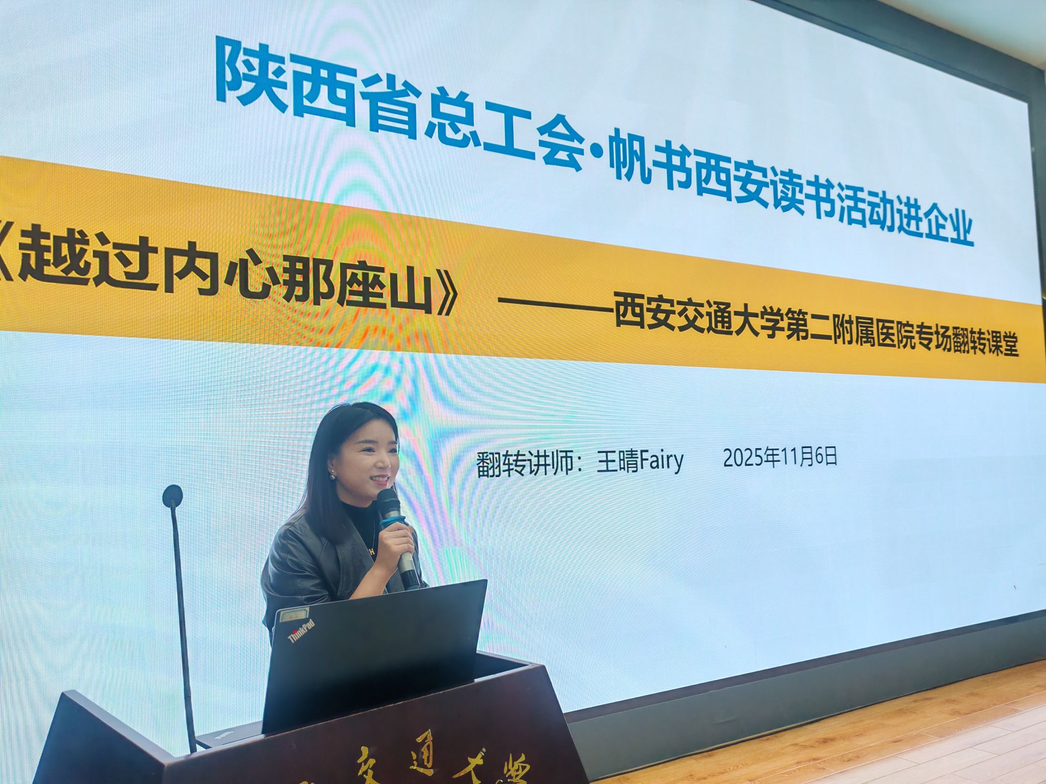 为丰富职工精神文化生活,关注职工心理健康,11月6日下午,陕西省总工会示范性读书活动走进西安交大二附院,60余名教职工齐聚工会多功能厅,共同参与了《越过内心那座山》主题读书分享会。