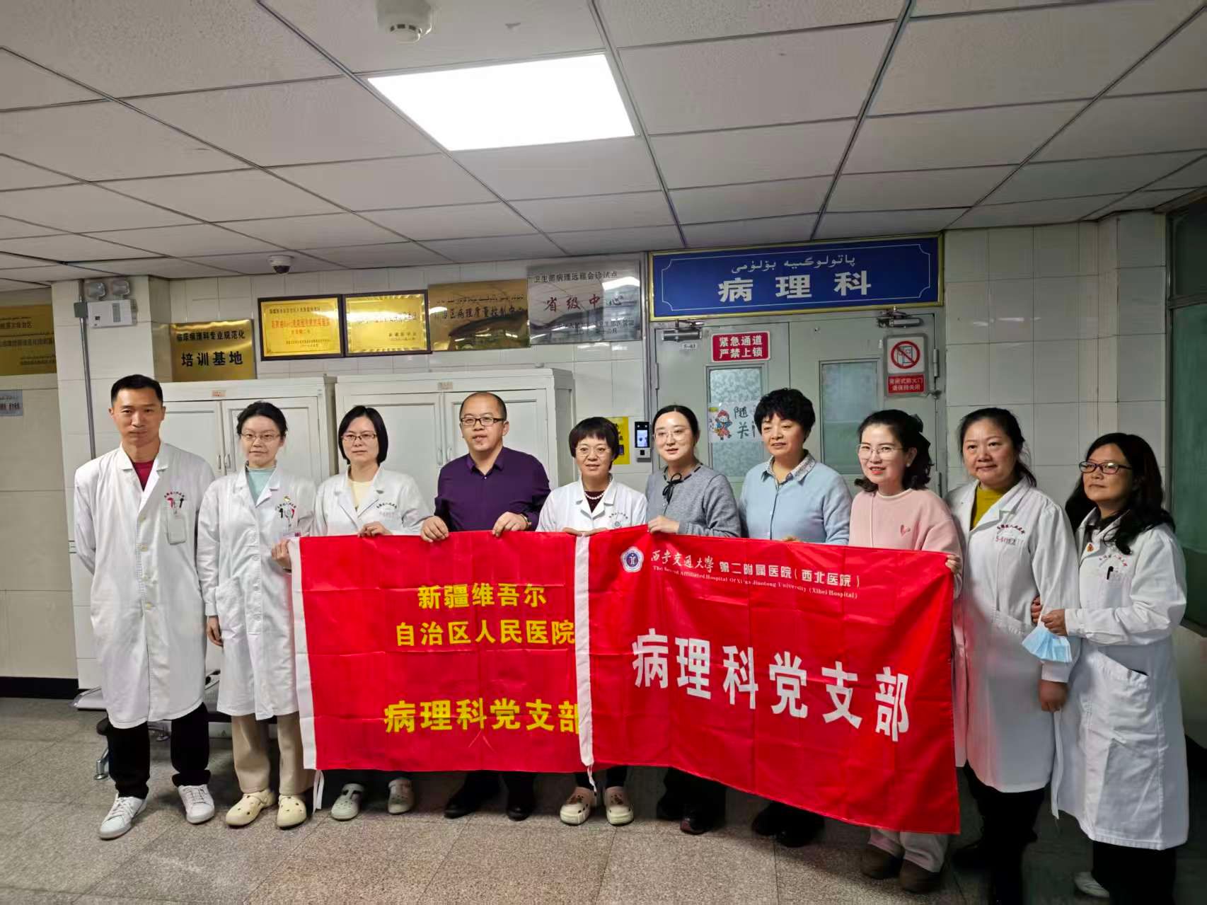 西安交通大学第二附属医院病理科党支部、医务行风与预防保健党支部、西安交通大学第二附属医院新疆医院(自治区人民医院白鸟湖医院)行政后勤联合党支部、自治区人民医院病理科党支部联合开展主题党日活动。
