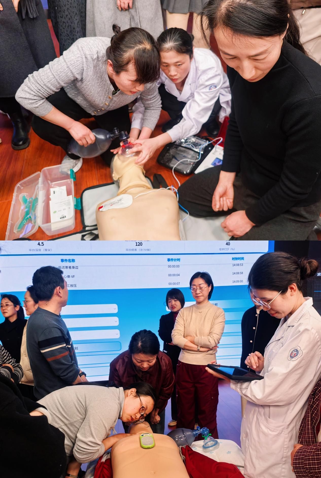 下午的实操演练则一场“硬核”淬炼。参训的90余名宝鸡地区急诊骨干被分为若干小组,在模拟人身上反复打磨胸外按压的深度、频率及通气细节。专家团队全程巡回,进行“一对一”精准指导。尤为重要的是,培训引入了ACLS(高级心血管生命支持)团队情境模拟,高度还原了心脏骤停救治现场,极大地锤炼了医护人员在高压环境下的指挥决策、角色分工与协同配合能力,将“个人英雄主义”真正升华为 “体系化团队作战” 。