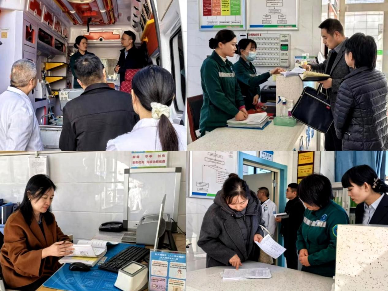 陈仓医院急诊科主任、陈仓区急诊急救质控中心副主任刘旭详细汇报了科室建设及质控指标落实情况,为专家组提供了全面评估的基础。座谈会结束后,专家组立即投入实地调研环节,各专家分领域展开细致检查。张正良教授重点考察了急诊科院前院内衔接机制及科室布局情况,杨林东教授深入调研了人员配置与信息化建设进展,彭卓教授则专注于急诊重点病种诊疗规范及医疗质量安全核心制度落实情况的评估,邱晓娟护士长系统检查了预检分诊流程及不良事件处理反馈机制。