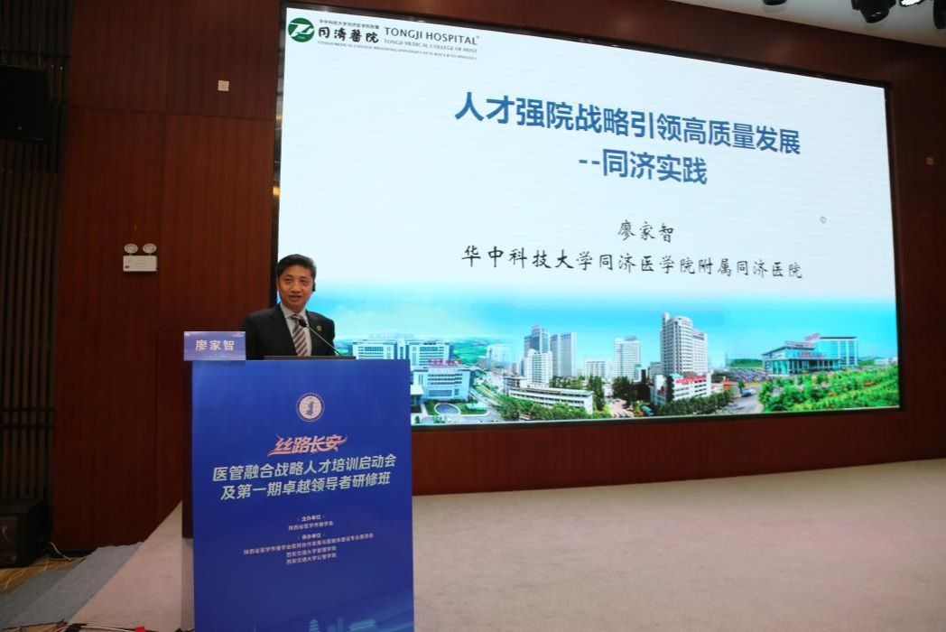华中科技大学同济医院常务副院长廖家智以“同济实践”展现人才强院战略的实施成效。