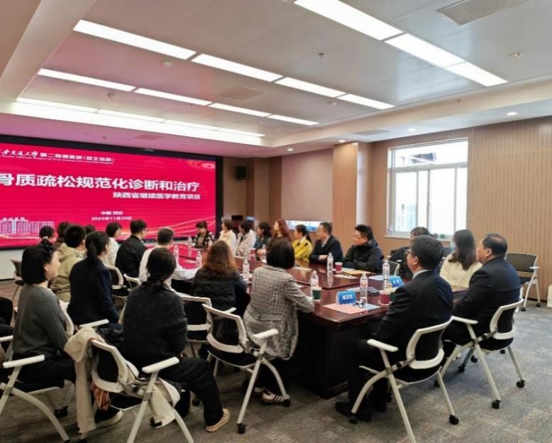 11月30日上午,陕西省继续医学教育项目 “骨质疏松规范化诊断与治疗培训班” 在我院西三楼6楼会议室召开。本次培训班由骨病与创伤病区主办,旨在提升相关医护人员对疾病的认知水平,进一步规范临床诊疗流程。培训特别邀请到国内骨质疏松领域内的知名专家南京鼓楼医院林华教授、西安市红会医院骨质疏松科主任曾玉红教授莅临授课,我院刘明副院长,风湿免疫科李学义主任,骨病与创伤病区张纯主任、王伟卓副主任,老年综合病区冯建军主任及院内相关科室医护人员共约40余人参与了此次会议。