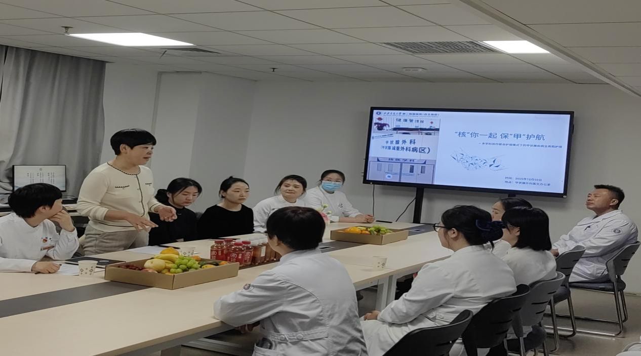 12月3日下午,为提升多科室医疗团队协作质量,提高患者就医体验,由甲状腺外科牵头,联合健康管理部及核医学科成功举办首次学术交流活动,三大权威科室打破学科壁垒、强强联合,只为给甲状腺疾病患者带来更省心、更精准、更全程的诊疗服务,共同守护甲状腺健康。