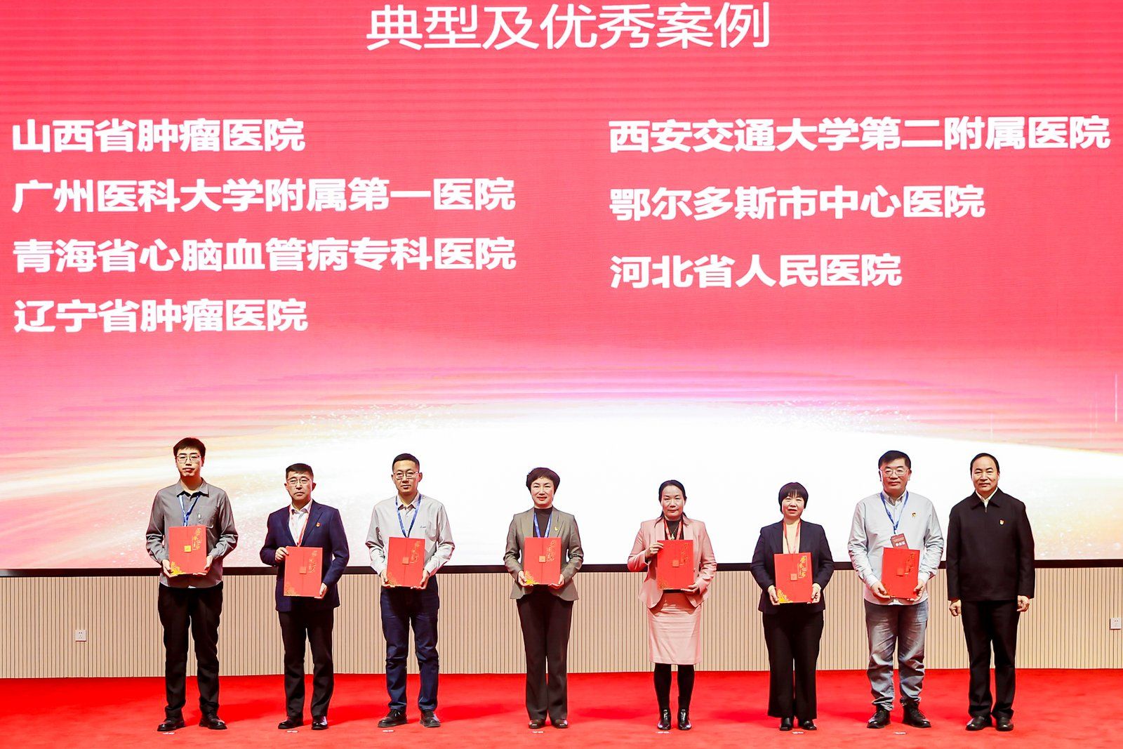 会上举行了全国卫生健康系统思想政治工作2024-2025年度“一地一品”特色品牌案例颁奖仪式。我院报送的《党建引领正作风党建强科提质效》案例荣获“典型案例”表彰。党变玲副书记代表医院上台领取了这一凝聚全院党建智慧与汗水的荣誉。