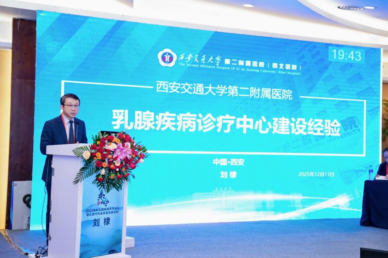 2025年12月13日,由陕西省抗癌协会主办,西安交通大学第二附属医院、西安交通大学第二附属医院乳腺疾病诊疗中心承办的“2025秦岭乳腺疾病系列论坛暨乳腺专科高质量发展论坛”在西安举行。本次论坛作为西安交通大学第二附属医院建院88周年五场系列主题学术会议的重要组成部分及年度系列学术活动的收官之作,以“凝聚共识、对标一流、推动乳腺专科高质量发展”为主题,汇集了来自全国各地的乳腺疾病领域院士、知名专家及学者,共同围绕乳腺专科建设的前沿理念、临床实践与创新路径展开深度交流与对话。论坛开幕式由乳腺疾病诊疗中心杜冲副主任主持。