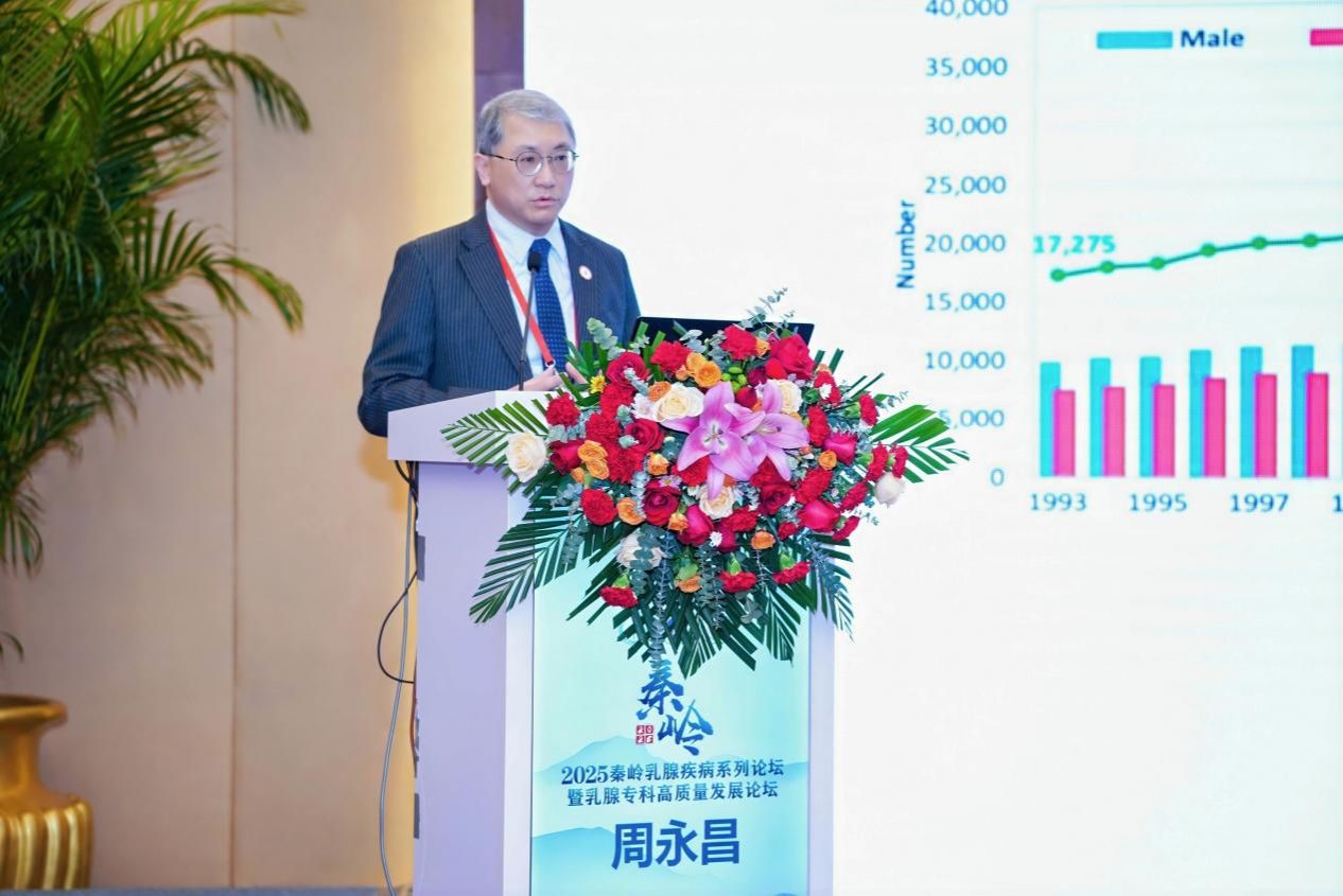 陕西省抗癌协会理事长宋张骏教授代表抗癌协会上台致辞,对秦岭乳腺系列论坛的召开表示了庆贺,他指出三秦乳腺学界是一个团结、优秀、奋进的学术群体,并对与会的全国各地乳腺顶尖专家的到来表示热烈欢迎,在响应国家高质量医疗服务号召下,使论坛成功召开进一步促进三秦及西北对区乳腺疾病专业诊疗质量的发展。