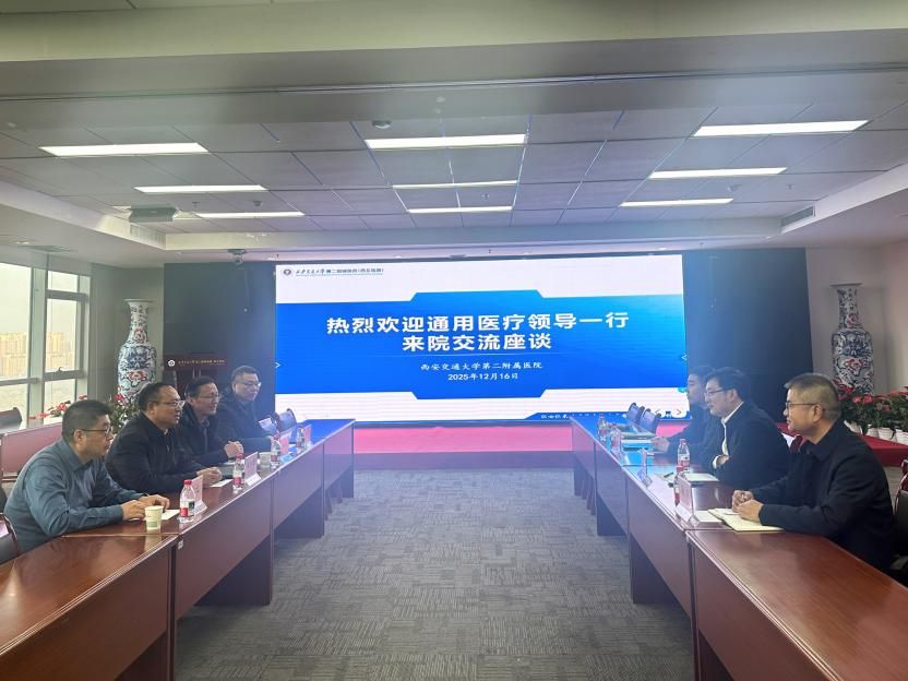 会上,朱东耀副书记介绍了通用医疗整体发展布局、医疗服务体系建设现状及未来发展规划,对我院的综合实力与发展成果给予高度认可。他指出,西安交大二附院作为区域优质医疗资源代表,在学科建设、技术创新等方面经验丰富,希望通过此次交流,深化与我院的合作联结,一方面助力高水平医疗技术向基层辐射延伸,另一方面借助优质资源赋能集团旗下医疗机构学科升级,完善区域布局,同时推动双方资源互补、协同发展,共同提升西北区域医疗服务整体水平,实现“优势互补、互利共赢”。