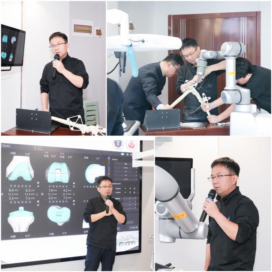 实操演练环节成为本次研习班的亮点。杨佩教授亲自进行《骨科机器人辅助TKA手术模型骨操作讲解》,在模型骨上完整演示了数据注册、三维规划、机械臂精准执行等全流程操作,将抽象的理论知识转化为直观的实操规范。学员们分组参与实操,在专家的现场指导下熟悉设备操作、优化手术流程,深入掌握机器人辅助手术的精准性控制要点,现场学习氛围浓厚。