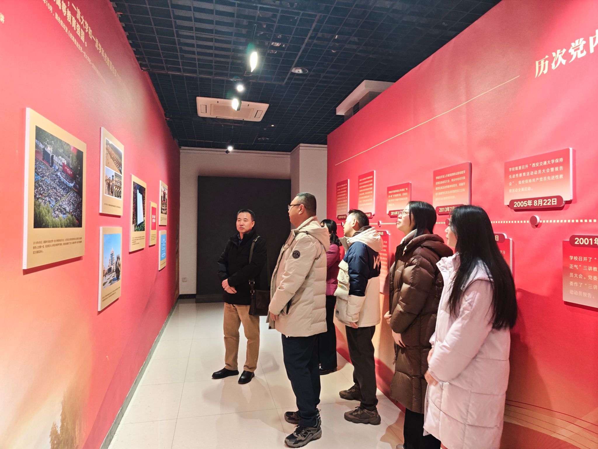 下午16时,支部党员们有序进入展厅。展览以时间为轴,通过丰富的历史图片、文献实物及多媒体展示,系统再现了交通大学党组织自成立以来,在党的领导下走过的百年光辉历程,以及一代代交大人在革命、建设、改革各个历史时期坚守初心、听党指挥、奉献报国的感人故事。