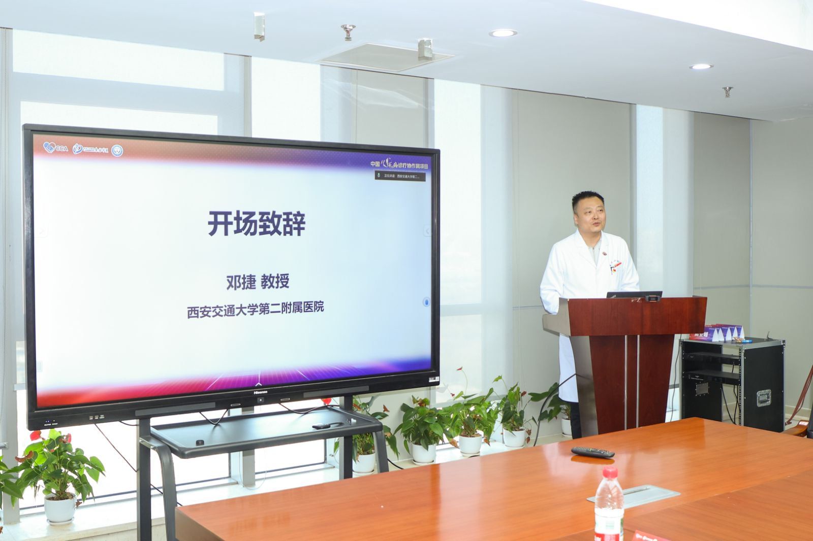 随后,来自上海交通大学医学院附属瑞金医院的金玮教授作为特邀专家线上致辞。金教授高度评价了我院成立协作网的积极意义,并指出这完全契合国家“心肌病诊疗规范提升项目”的核心精神。她强调,该项目的目标正是通过系统化培训与平台搭建,全面提升临床医生对心肌病的精准识别与规范化诊疗能力。她期待我院能凭借扎实的多学科合作基础,在心肌病诊疗领域探索出卓有成效的“交大二院模式”,并预祝协作网取得丰硕成果。