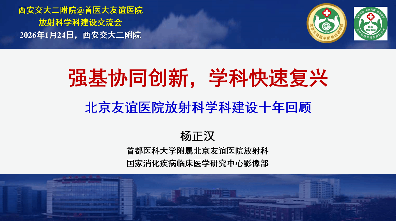 紧接着,杨正汉教授做了双方围绕学科建设与科室发展展开深度座谈。杨正汉教授系统分享了北京友谊医院放射科近十年来的学科发展路径与建设成效,从顶层设计、亚专科分化、人才梯队构建、科研平台支撑、到质量管控与文化培育,多层次、全方位地介绍了该院放射科的先进经验和成熟模式。其始终坚持的“以临床需求为导向、以科研创新为驱动、以人才培养为核心”的发展理念,以及在亚专科精细化管理、产学研用协同发展等方面的成功实践,为我院医学影像科的未来规划与建设提供了重要参考和启示。