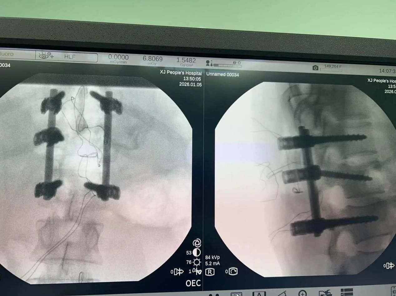 近日,新疆医院骨科,以一场高效、精准的联合救治,驻疆专家樊立宏、王国毓前瞻性地邀请神经内科专家李建新主任协作,引入了 “术中神经电生理监测(IONM)” 这一尖端导航技术。运用躯体感觉诱发电位(SEP)、运动诱发电位(MEP)、自由肌电图(EMG)及触发肌电图等多重技术,构建起全方位的神经功能监护网络。在置入椎弓根螺钉的关键时刻,触发肌电图敏锐判断,规避神经损伤风险;在骨折复位与减压的精细操作中,SEP与MEP的波形犹如生命律动的密码,被实时解读,任何细微异常都即刻化为语音提示,引导手术医生调整手法,最大程度保护脊髓功能毫发无损。为一位胸椎爆裂骨折危重患者托起了希望的脊梁。