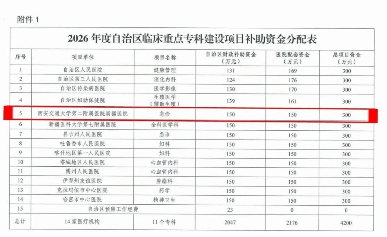 近日,新疆维吾尔自治区卫生健康委员会正式公布2026年度临床重点专科建设项目名单,西安交通大学第二附属医院新疆医院重症医学科成功获批“国家临床重点专科建设项目”,急诊科获批“自治区临床重点专科建设项目”,标志着医院在危急重症救治和急救领域的专业能力与学科建设水平获得认可。