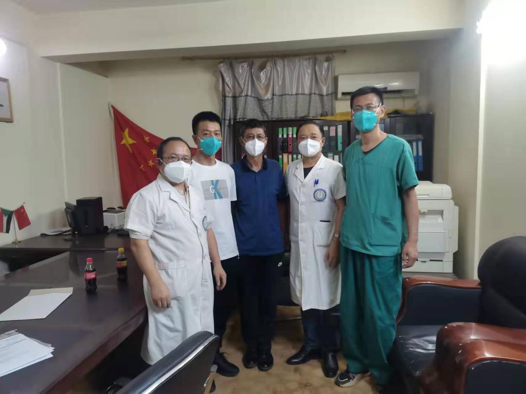 医疗队队长邢之景在接到任务后,立刻召开紧急会议。该患者集新冠肺炎、疟疾和伤寒传染病于一身,均为急性期,传染性较强,同时处于呼吸衰竭状态,血氧饱和度难以维持正常水平。队长根据医疗队人员配置及专业情况,安排刘重霄副队长、杨屹和刘海三位专家前往,并嘱托在及时救治患者的前提下,携带好防护用品,做好自身防护,保证安全。由于苏丹夜间街头常有军警持枪查检车辆,为策安全,再急调当地司机萨拉赫开车。