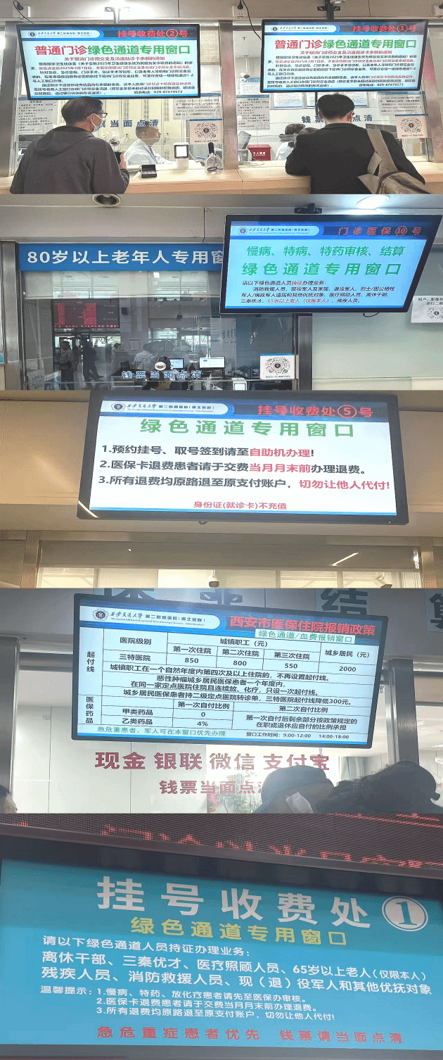 增设绿色通道,筑牢救治保障。优先增设绿色通道人工窗口6个,有效缓解窗口排队压力,并在绿色通道窗口配备老花镜、放大镜等便民用品。针对急危重症及三无患者等特殊群体,实行24小时在OA系统线上办理绿色通道救治申请,确保就医救治零延误。