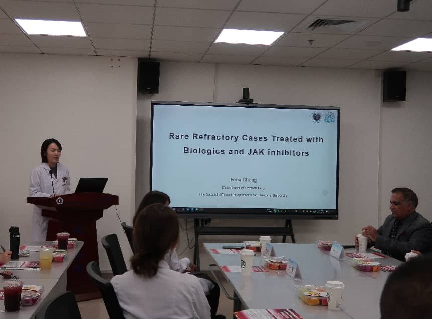 随后,冯程博士以"Rare Refractory Cases Treated with Biologics and JAK Inhibitors"为题进行学术分享,展示了我科诊治的部分疑难复杂病例,充分体现了我科在西北地区疑难罕见重症皮肤病领域的诊疗水平。