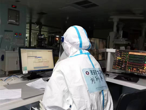 然而,回来后,医院的形式越加严峻,作为医护人员,我们将面临着更大的考验,大批的工作人员,我们的同事们都在接受新冠的洗礼,在岗医护人员严重短缺的同时,重症患者剧增。从榆林回来居家监测的第三天晚上,在医院的紧急派遣下我和重症的两位老师一起进驻西二楼一病区重症监护病房,当晚,就紧急收治了一名使用无创呼吸机的重症患者,经过一夜的奋战,患者终于病情平稳。两位老师虽是身经百战,但是面对病情紧急的重症患者,精神压力都非常大,思想时刻处于高度紧张状态。一起坚持了两个班以后,崔彦飞身体不堪重负,发烧复阳了,在此之前他刚刚感染过,身体还没有完全康复就回到了岗位上,我由衷的佩服他的敬业精神,在他身上,我看到了二院人的那种忘我精神。