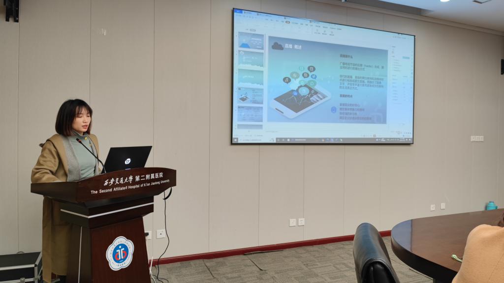 在小讲课环节,宣传部屈姝利以《网络直播是啥》为题,讲解了直播的概述、直播的发展史、直播+无限可能、直播+医院品牌塑造等内容。她生动讲述了直播能够便捷、快速传递信息,打破信息差距;直播互动性强,能在线答疑解惑,观众参与感高、打破信息壁垒;直播形式多元、医生专业知识接地气、观众接受度高;直播可以降低传播成本,提高传播效率。二附院打造的“西安交大二附院科普直播间”在传播医院信息、打造医院品牌、展示医院形象、提高患者满意度等方面有积极作用。