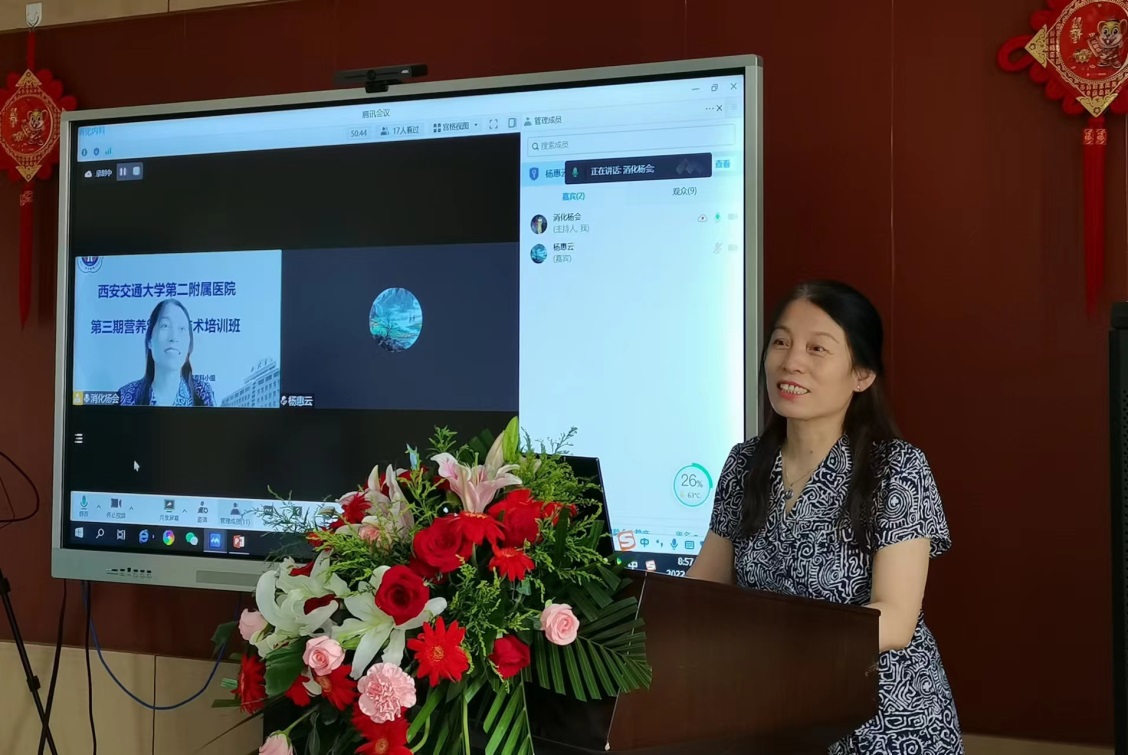 我院营养护理专科小组长、消化内科杨会护士长对参加培训班的学员表示热烈的欢迎,提出营养护理的先进理念、技术需要通过学员们通过系统化培训,带到各个地方,希望真正做到学有所思、学有所得。