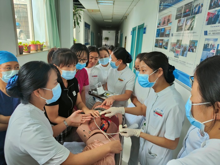 此次培训班课程分为理论授课和技能培训两部分。在理论授课环节,授课老师们从多个维度讲解肠内营养相关知识以及最新置管及护理理念,我院营养小组组长杨会护士长为大家讲授了《临床营养专科护士的现状与发展》,就临床营养的发展、专科护士的发展、国内外临床营养专科护士的现状及未来临床营养专科护理发展趋势等为大家带来精彩讲座;重症医学科王利护士长讲授了《患者早期肠内营养的临床实践》及《肠内营养规范化管理》;营养科宋敏教授讲解了《肠内营养制剂的选择》,通过此次课程,学员们对于营养液有了更加深入的认知;神经内科刘媛媛护士长深入浅出的讲解为我们诠释了肠内营养并发症的预防及处理专题讲座,让我们受益匪浅;消化内科赵红莉副护士长及汪永华副护士长为我们带来《肠内营养非计划拨管、堵管的预防》,《营养风险筛查与监测》,详细阐述了置管前后护理的要点。由神经外科王金娟护士长、神经内科刘媛媛护士长、消化内科赵红莉副护士长、重症医学科胡波护师分别进行鼻肠管营养案例分享。老师们从自身临床置管经历向学员们讲解了置管难点及如何突破难点,为学员们今后置管带来了信心。置管技能培训以工作坊的形式进行,分别由神经内科刘媛媛护士长和重症医学科胡波护师进行现场示教,精心安排大家观看了置管规范视频,并且现场通过模拟人为大家演示了置管技术以及核心操作技巧,采用手把手带教辅导,每位学员积极主动,演示期间不停地向老师请教知识点,学员分组练习并围绕鼻肠管置入在临床应用中的难点和心得进行热烈的讨论和经验分享。经过评价反馈,学员普遍反映对胃肠营养管盲插置管技术难点掌握到位,有信心在科室顺利开展此项技术,将最新理念应用于临床工作中。