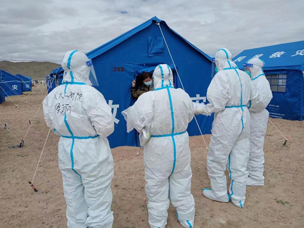 疫情就是命令,防控就是责任,2022年8月14日晚接到省卫健委通知,我院迅速组建医疗队支援西藏阿里地区的疫情救治工作。不到12小时的准备、体检时间,没有对高原的恐惧,更没有对疫情的退缩,由医疗、检验、护理、感控专业组成的10名队员依然义无反顾奔赴阿里地区。因大部分队员是第一次上高原,出现了不同程度的高原反应,但没有畏怯,相互帮助,在平均海拔4500米以上的高原上,第一时间投入抗疫前线。